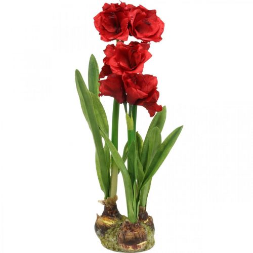 Amaryllis kunst rood 3 zijden bloemen op mosballen H64cm