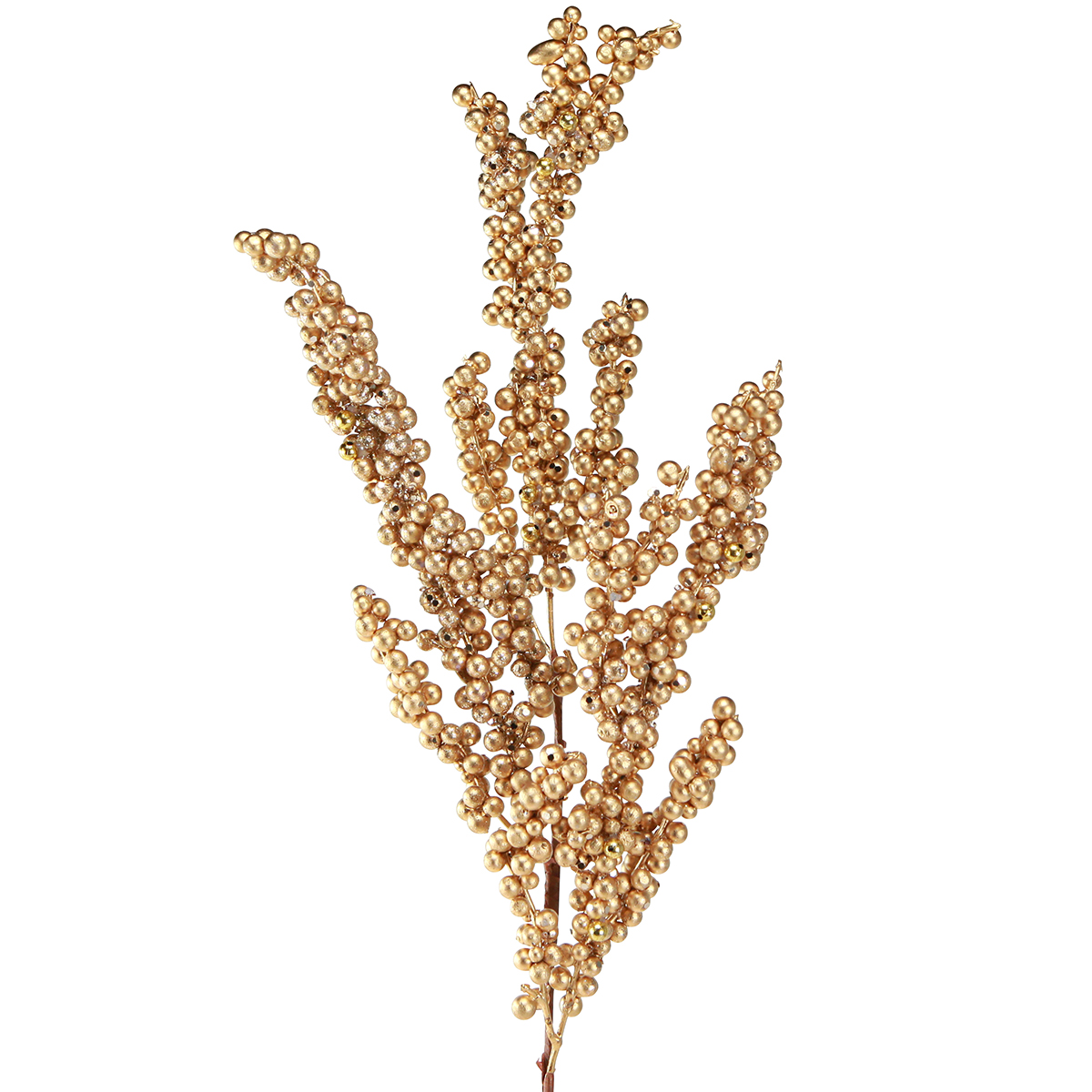 Een stijlvolle kerstperiode begint met de juiste sfeer. Betover je huis met onze elegante bessentak met gouden bessen. Perfect als kersttak of tafeldecoratie voor de feestdagen!