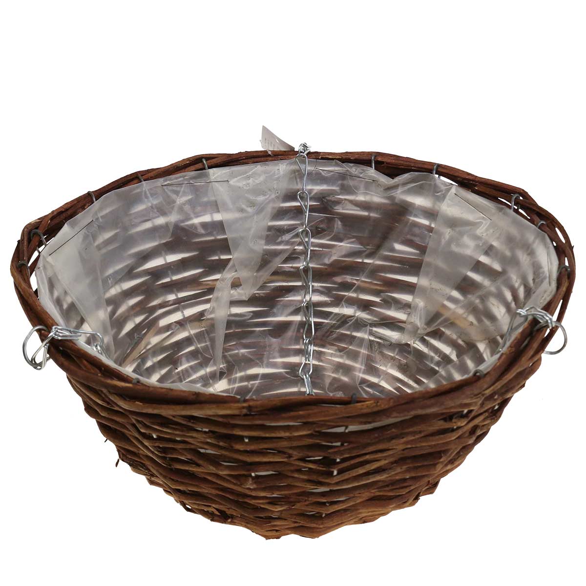 Deze klassieke bruine hangmand laat je bloemen en planten groeien en bloeien in een verhoogde positie.De hanging basket bestaat uit een plantenmand van klimplanten en een ophanging van drie metalen kettingen met haken die samenkomen. De hanging basket krijgt zijn typische ronde mandvorm door een metalen frame waar de ranken omheen gevlochten zijn.
