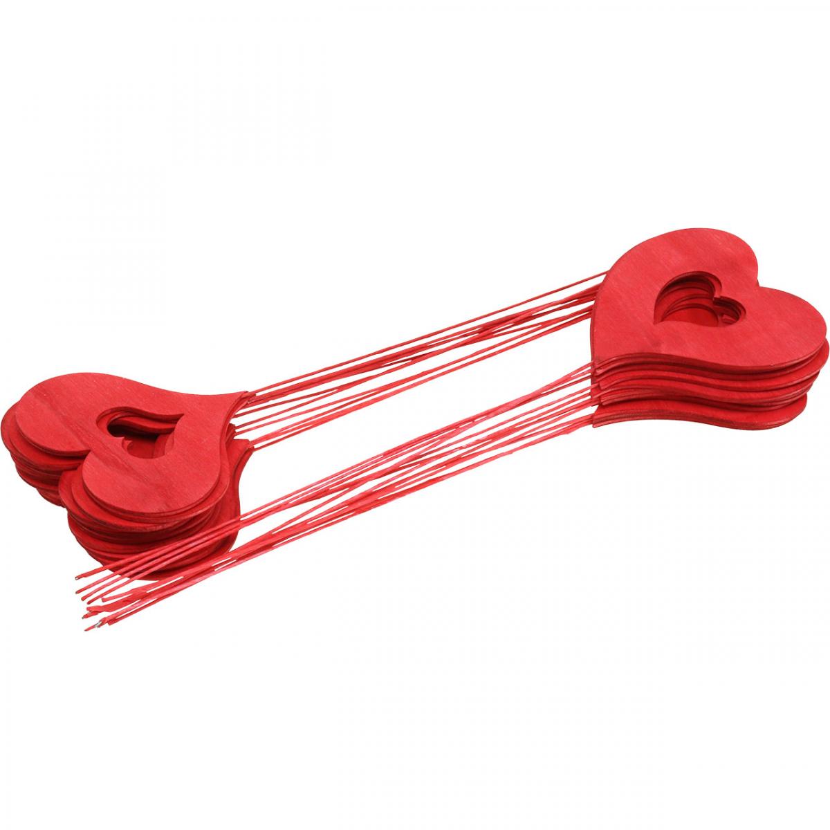 Bloemenplug hart, houten decoratie om op te plakken, Valentijnsdag, decoratieve plug rood, Moederdag L31-33cm 24 stuks