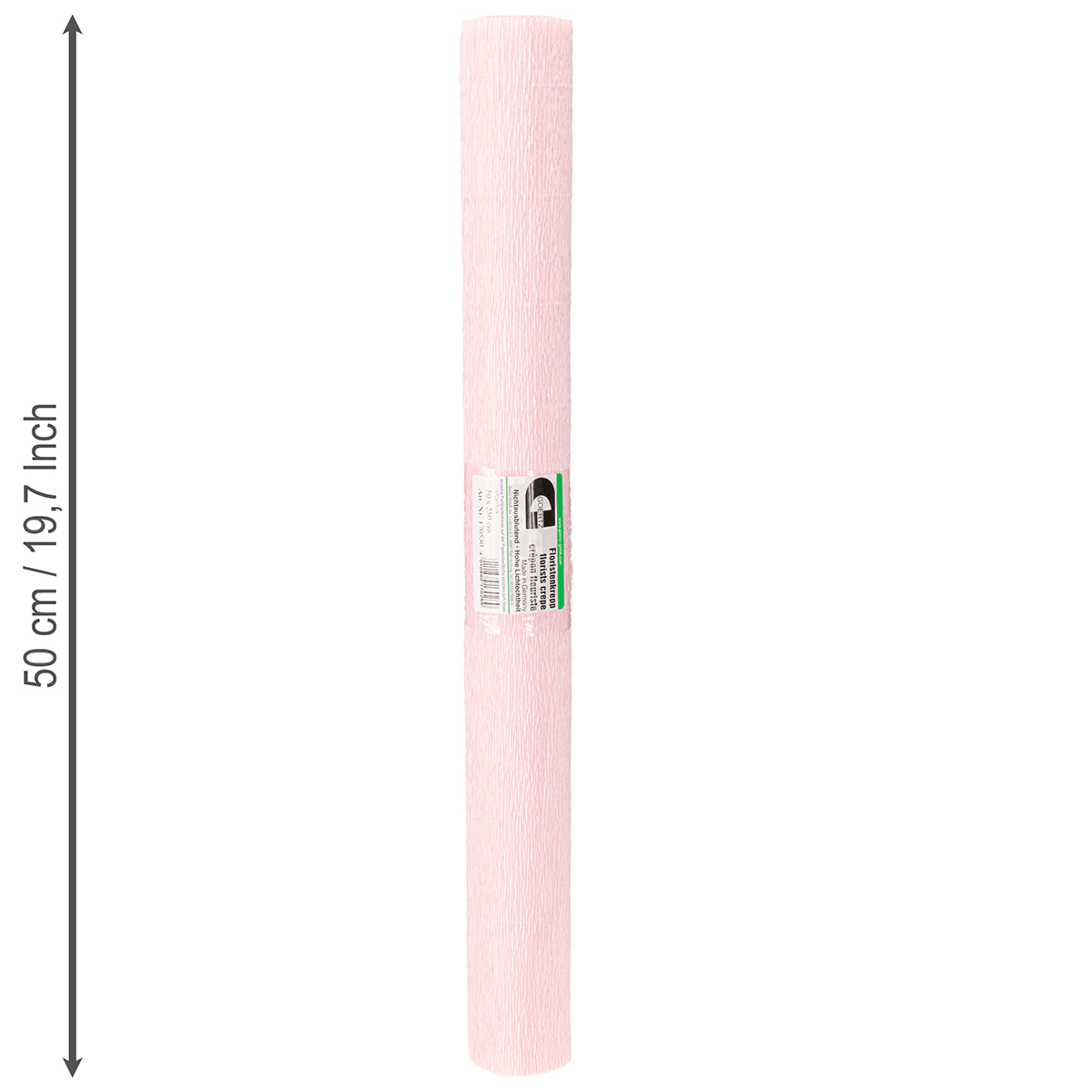 Het bloemist crêpepapier in roze wordt geleverd als een rol van ongeveer 50 x 250 centimeter. Het gramgewicht is ongeveer 128 gram per vierkante meter en het gewicht is ongeveer 160 gram per rol.