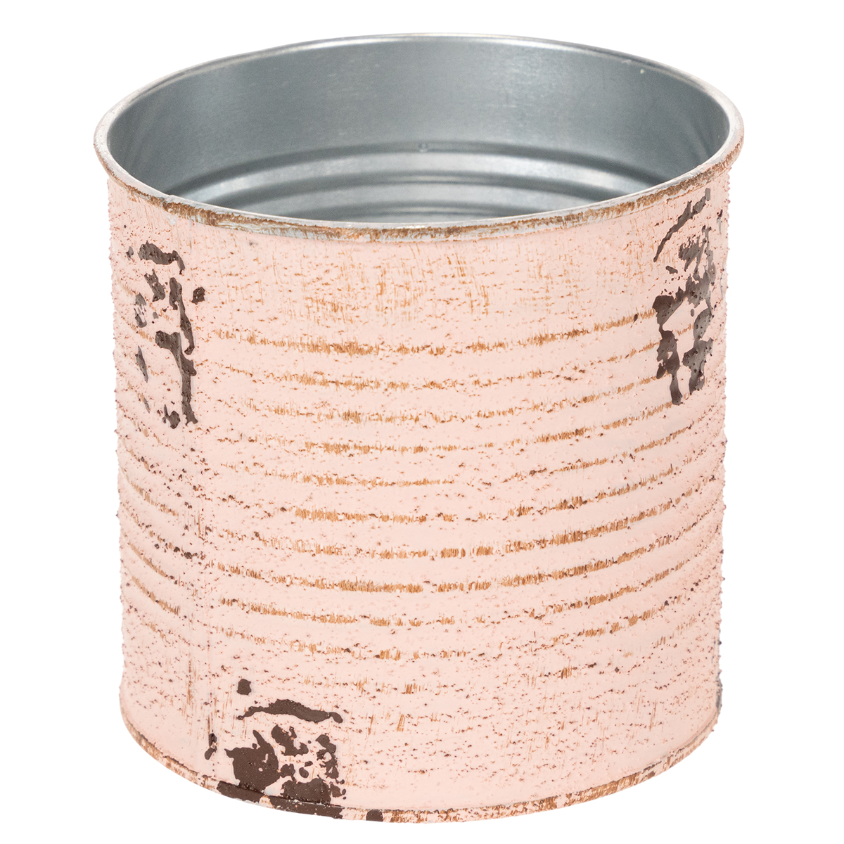 Bloempot decoratief blik van zalmkleurig metaal, zomerdecoratie Ø11cm H10.5cm