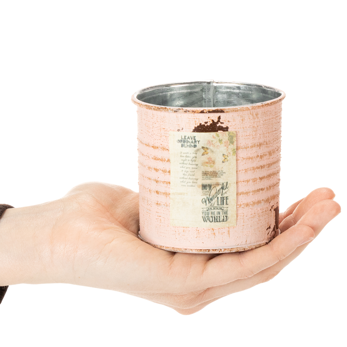 Bloempot decoratieve blik zalmkleurige metalen kruidenpot Ø8cm H7.5cm