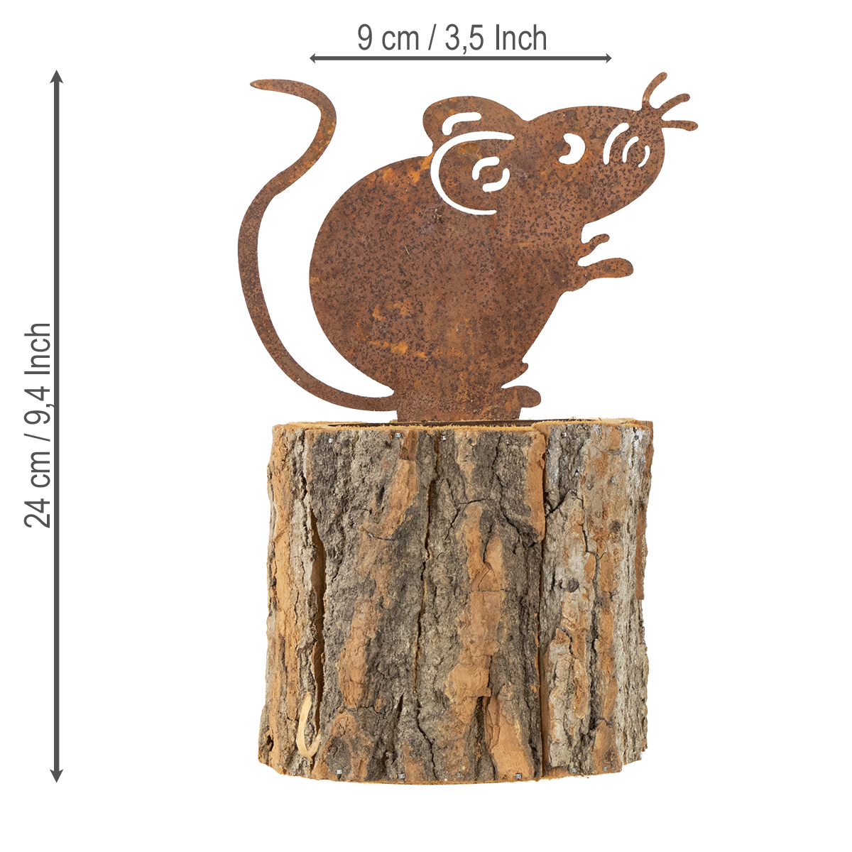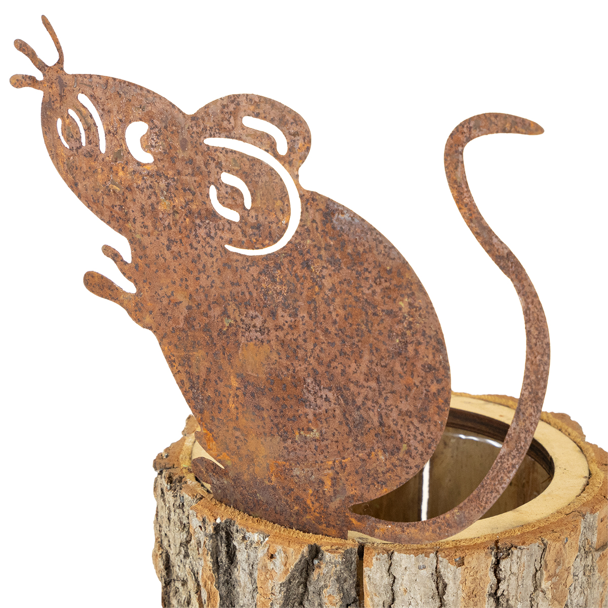 Bloempot houten plantenbak schors en muis roest H24cm