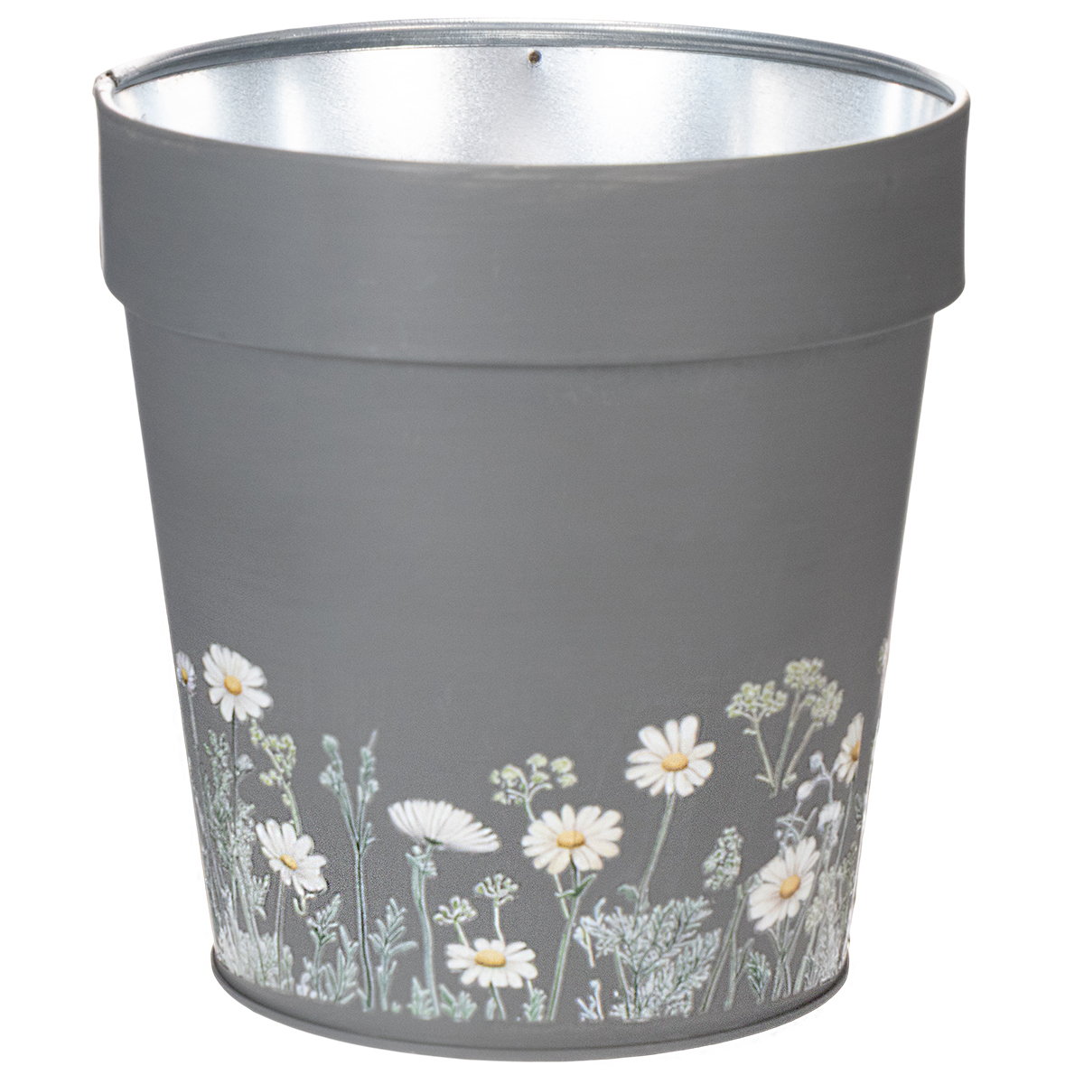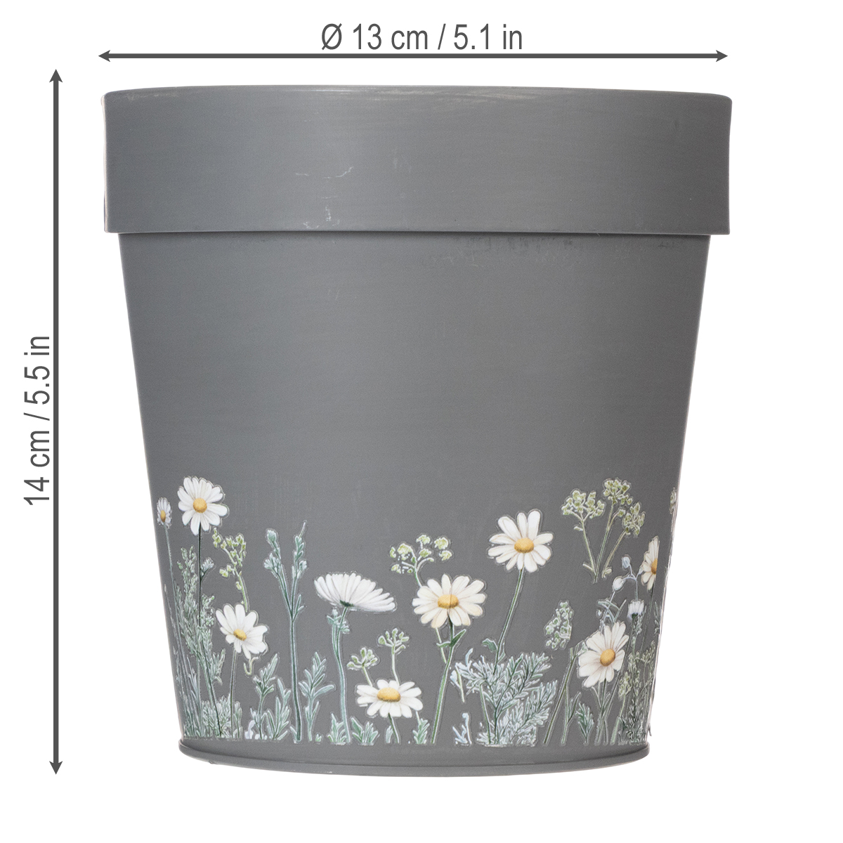 Het bloemenpatroon van deze elegante grijze bloempot geeft elke ruimte een strakke, moderne uitstraling. Geïnspireerd door Scandinavisch interieurdesign, maakt deze plantenbak indruk met een prachtige mix van eenvoud en oog voor detail. De charmante bloemenprints zijn tijdloos en zorgen voor een harmonieuze uitstraling in uw interieur. De bloempot is gemaakt van robuust maar licht metaal en is daardoor duurzaam; volledige roestbestendigheid kan echter niet worden gegarandeerd bij gebruik buitenshuis of in contact met water.