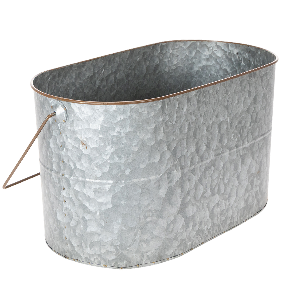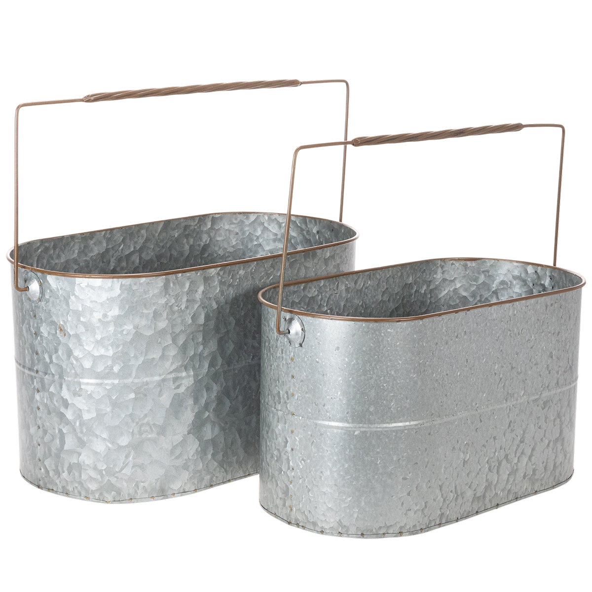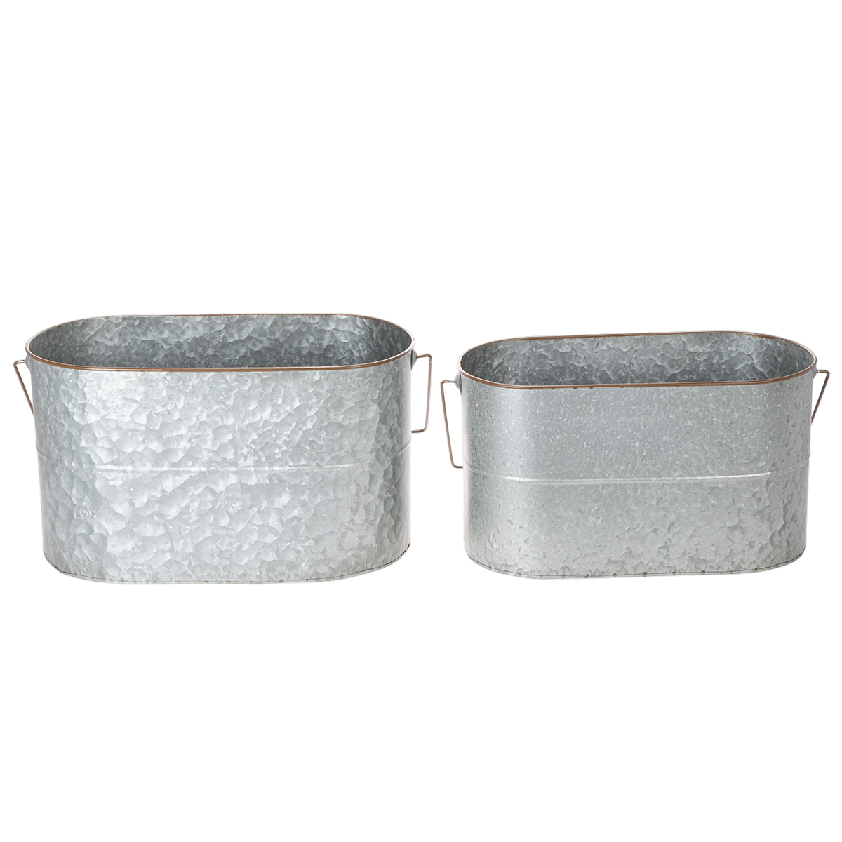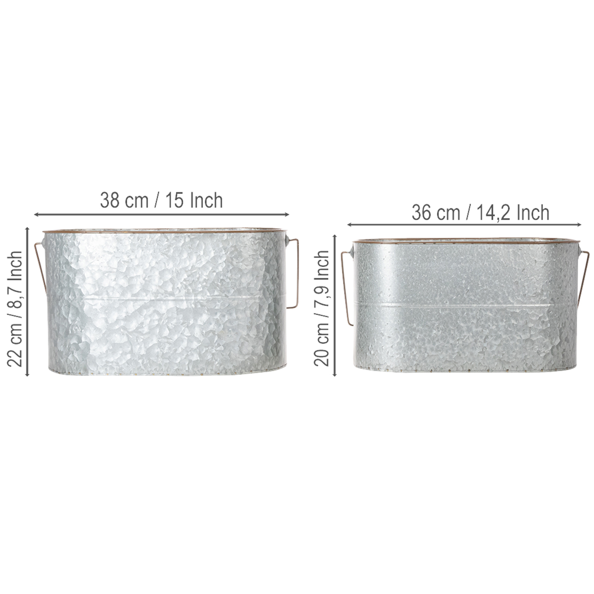 Bloempot met handvat, metalen pot, plantenbak, zilver, bruin, H22/20cm L42/40cm, set van 2
