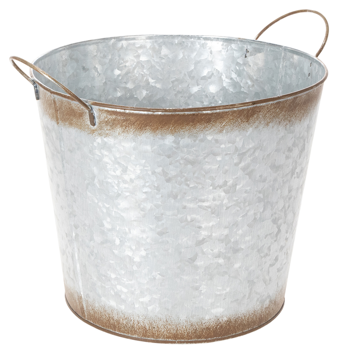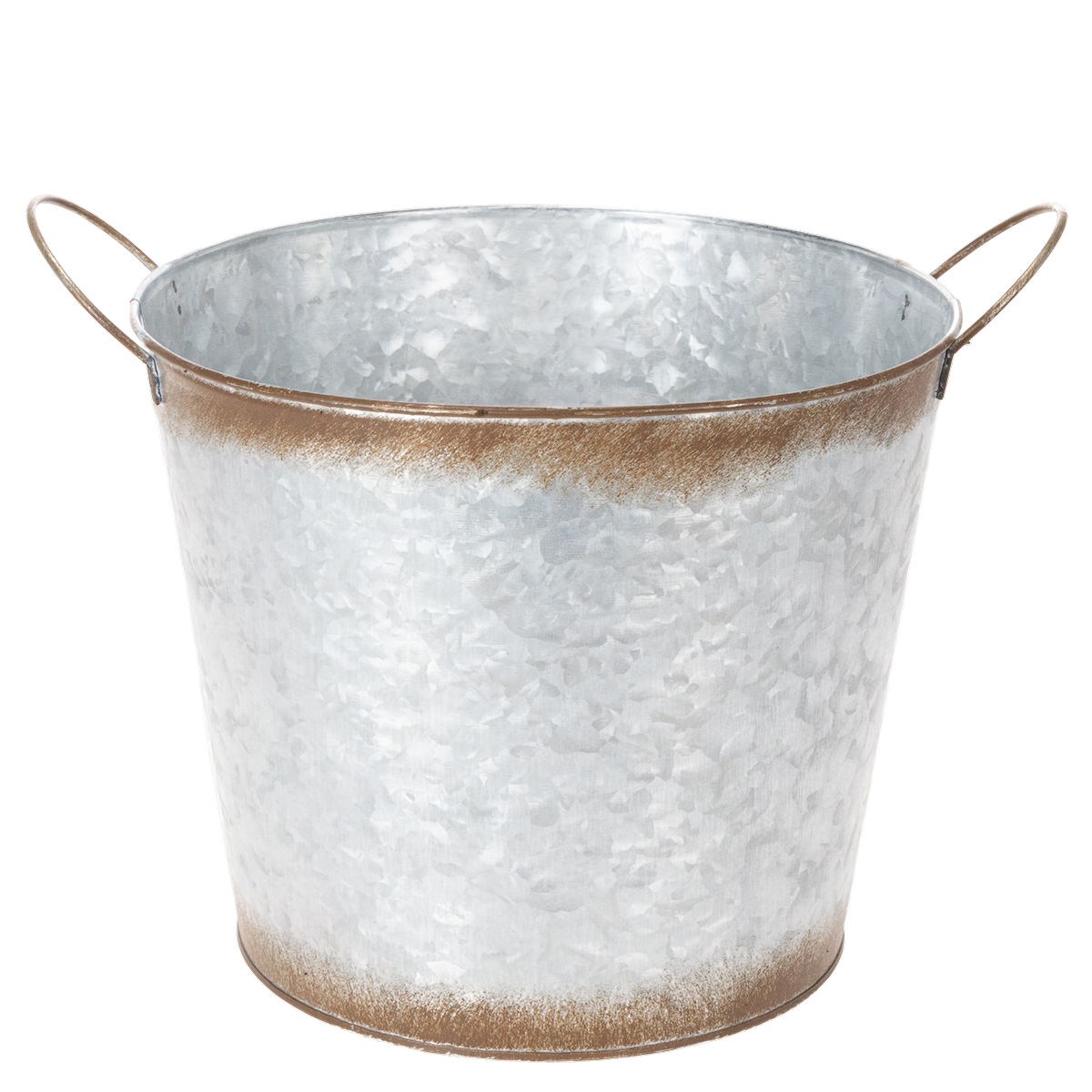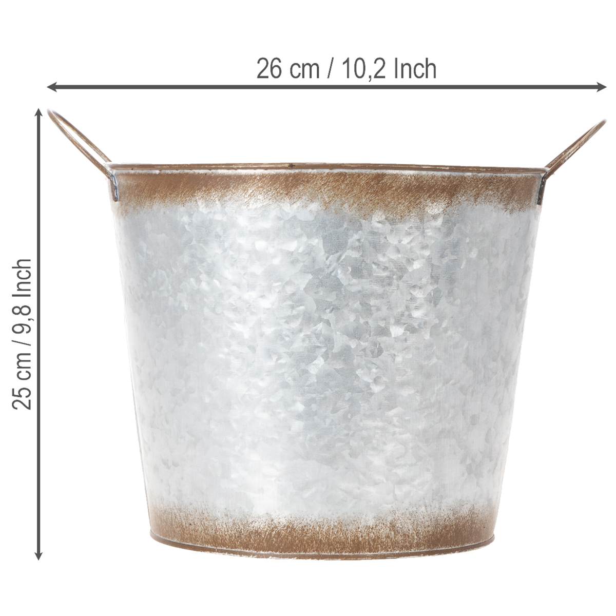 Bloempot met handvatten, decoratieve schaal met roestkleurige afwerking, zilverkleurige metalen pot Ø26cm H25.5cm