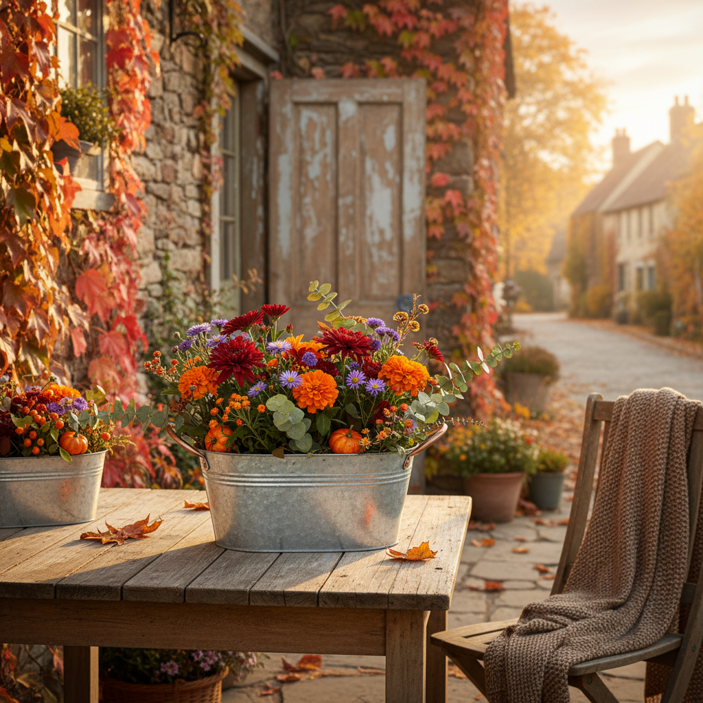 Als u deze bloemschaal wilt planten, moet u deze afdekken met folie om te voorkomen dat vocht en roest ontsnappen. De decoratieve schaal is ook een duidelijke favoriet in de rustieke decoratie van de lente tot de herfst voor een minitafelarrangement op droog steekschuim.