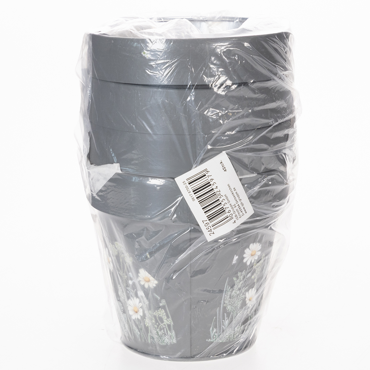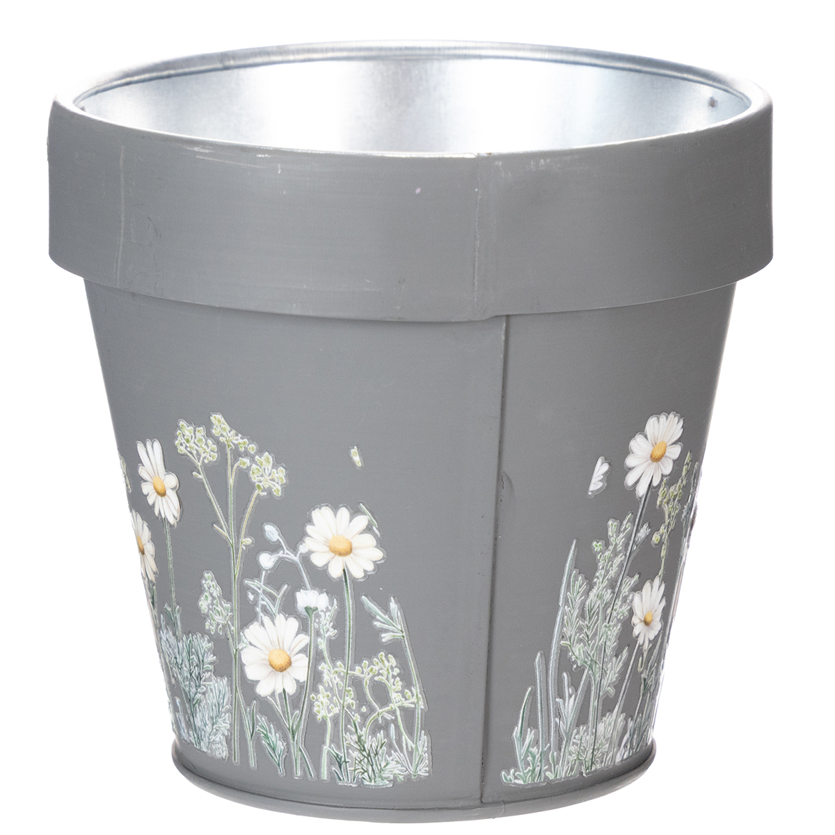 Deze decoratieve bloempot met madeliefjesmotief brengt een frisse wind in uw interieur. Of het nu op de vensterbank, een plank in de woonkamer of een bureau is – het subtiele grijze design past harmonieus in elke omgeving. Het charmante bloemenmotief voegt een vleugje natuur en levensvreugde toe aan elke ruimte. Vier potten in een set – zo creëert u meerdere uitnodigende oases. Praktisch en lichtgewicht, gemaakt van stevig metaal, is deze bloempot niet alleen mooi, maar ook verrassend veelzijdig. Een klein pronkstuk dat stijl en functionaliteit combineert!