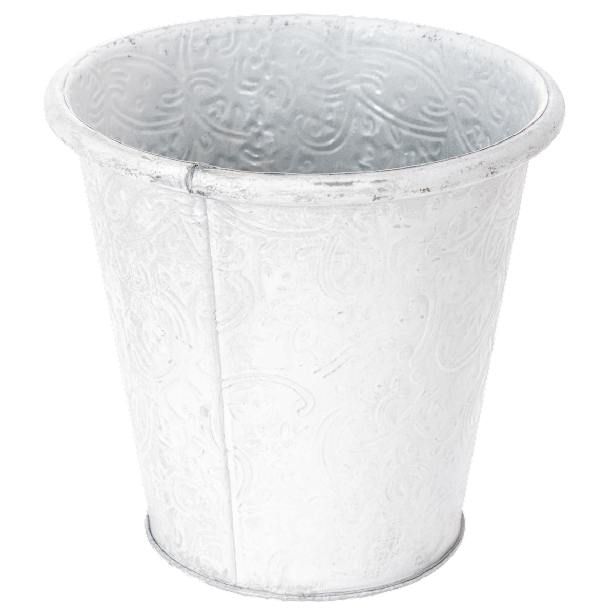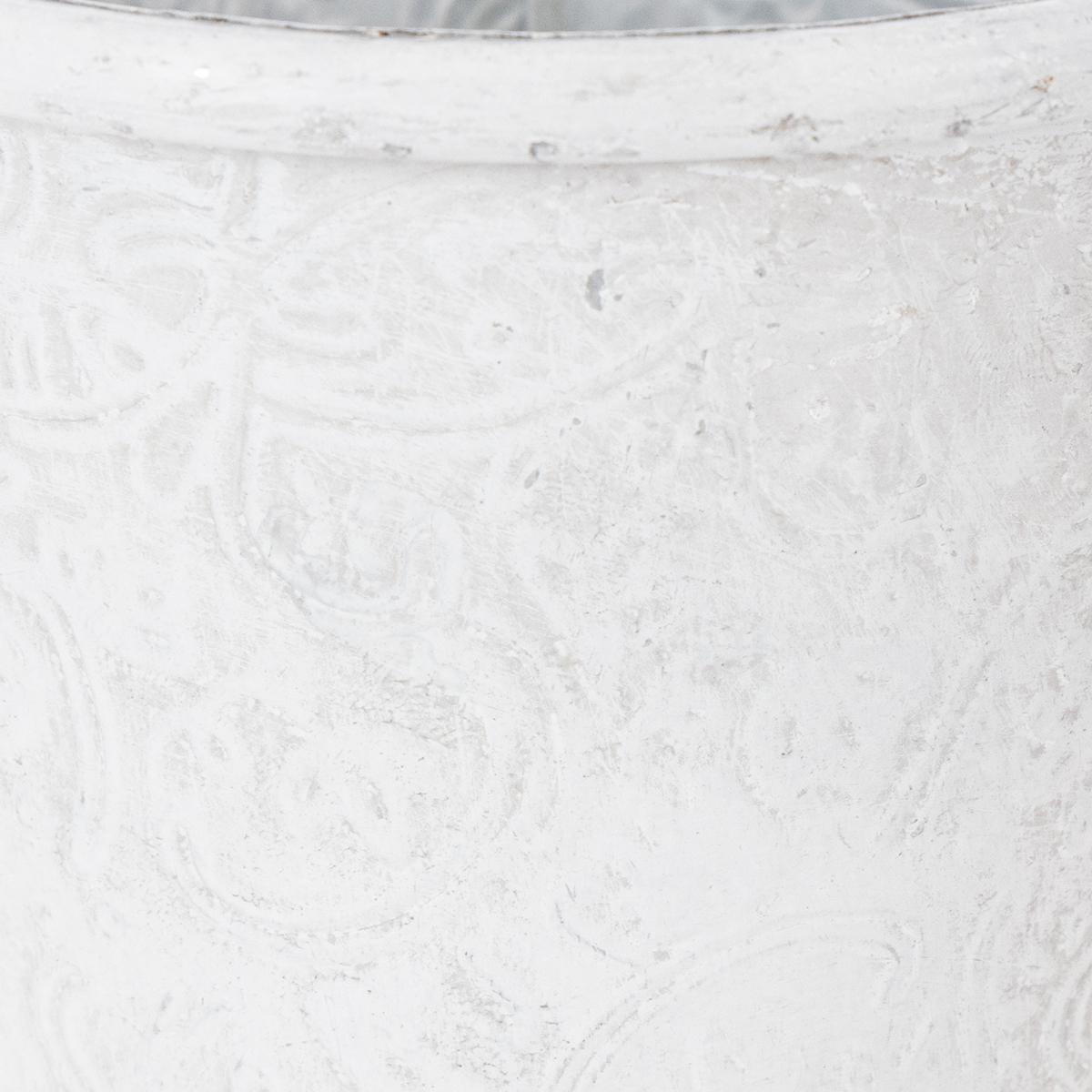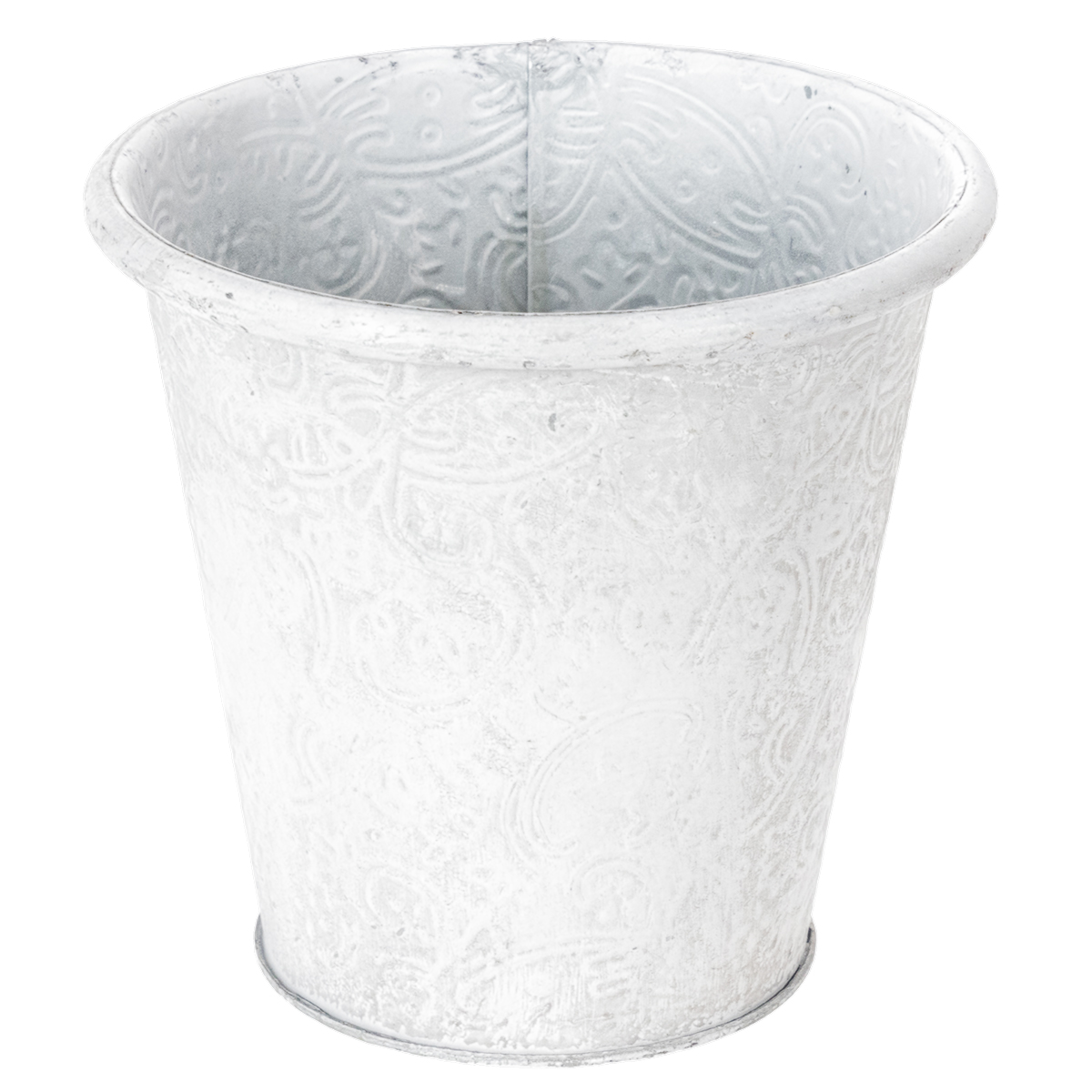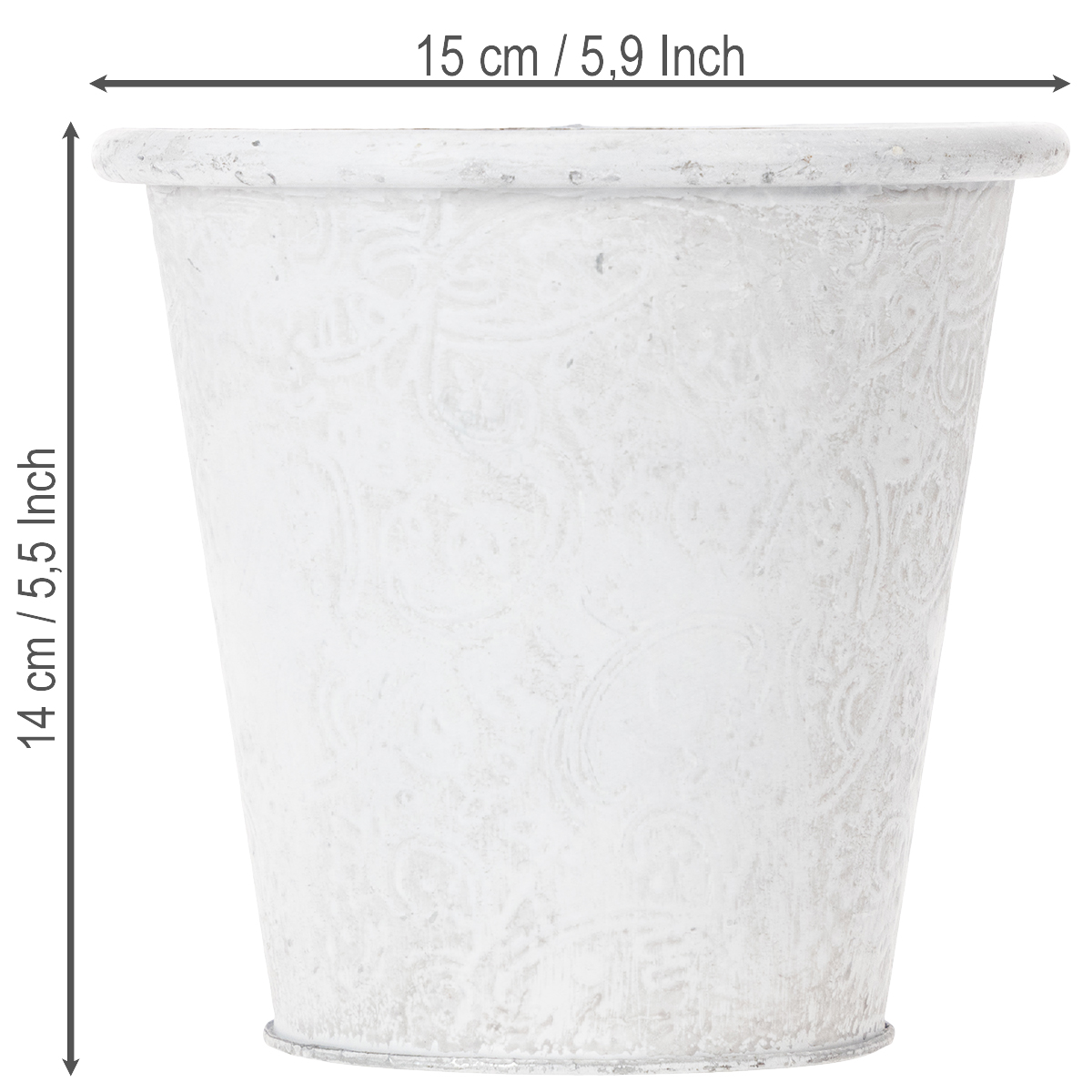 Bloempot met ornamenten, sierpot, metalen container, wit, Ø15,5 cm, H14,5 cm