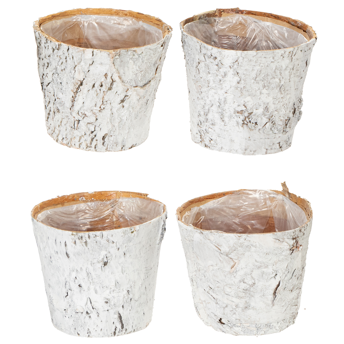 Productnaam: Bloempot van berkenhout, middelgroot, plantenpot, berkenhout, wit, Ø12 cm, H10,5 cm, 4 stuks