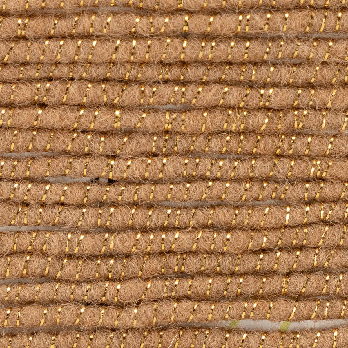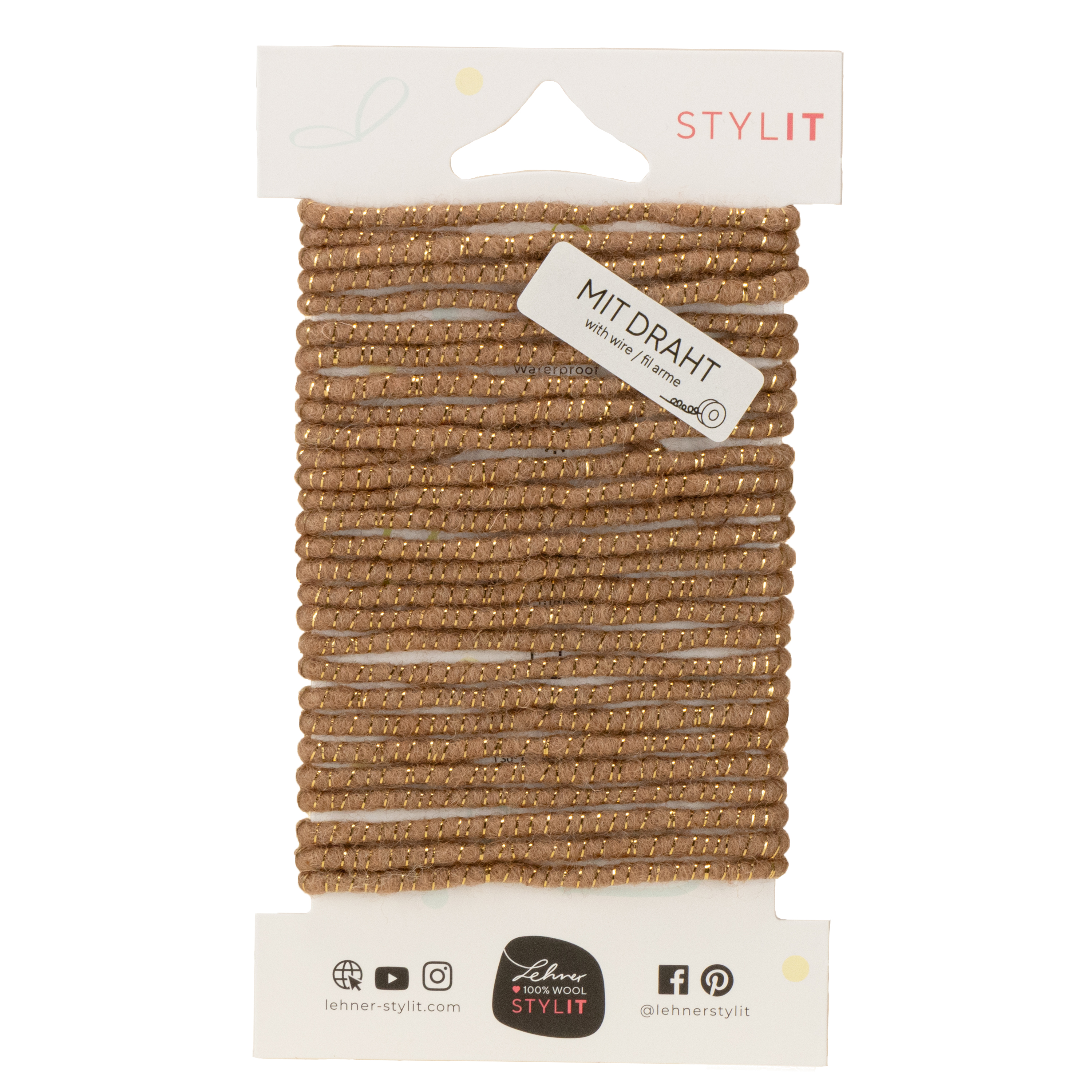 Dit bruin-gouden wollen koord is een echte allrounder voor decoratie, knutselen en creatieve projecten. Gemaakt van 100% wol en verweven met fijne, glinsterende gouden lurexaccenten, heeft het een bijzonder verfijnde uitstraling. Perfect om elk project een warme maar elegante touch te geven. De geïntegreerde draad aan de binnenkant houdt het koord in vorm en maakt het ongelooflijk gemakkelijk om in allerlei vormen te buigen – van delicate wikkelingen tot gedurfde strikken en lussen.