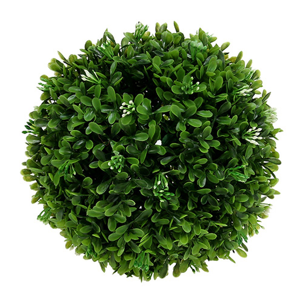 De kunstbuxusbal heeft een diameter van circa 18 centimeter en is gemaakt van hoogwaardig, weerbestendig kunststof. Naast de weelderige groene bladeren van de kunstplant zie je altijd kleine, gesloten witte bloemen, die het totaalbeeld van de sierplant letterlijk afronden.