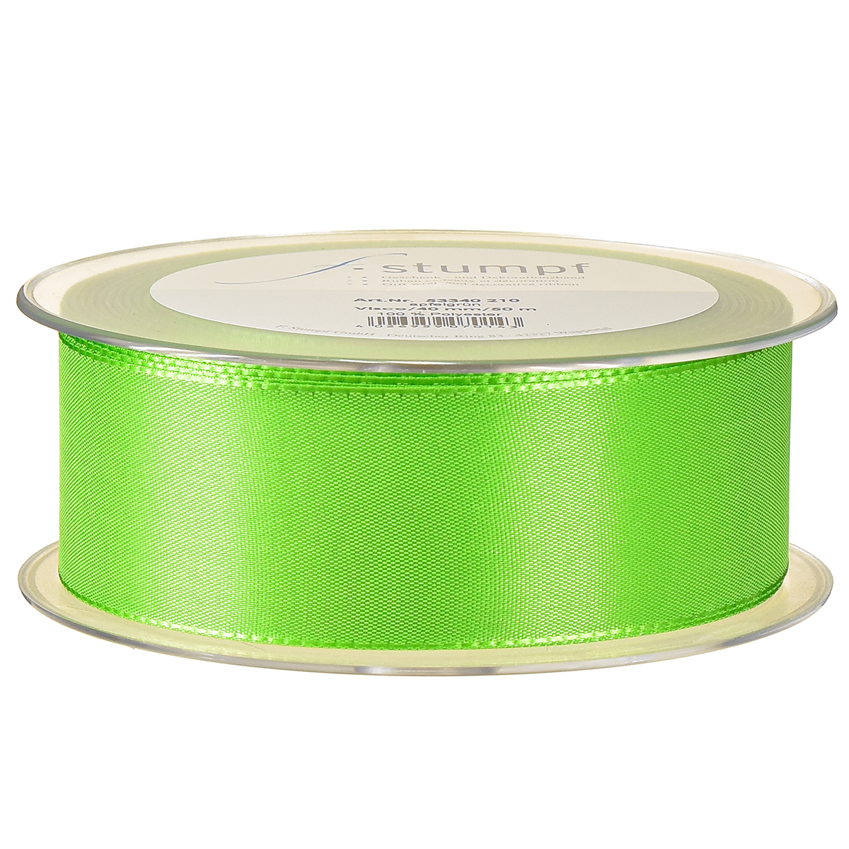 Het cadeau- of decoratielint in lichtgroen is ongeveer 40 millimeter breed en ongeveer 50 meter lang. Het was gemaakt van 100% polyester.