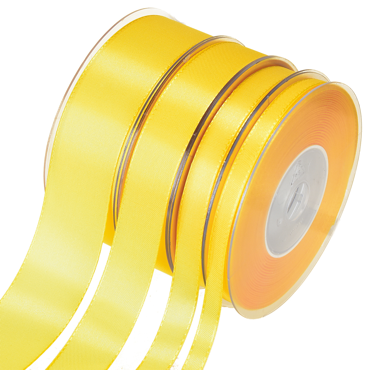 Het cadeau- en decoratielint in geel is verkrijgbaar in verschillende breedtes, die u kunt selecteren in het tabblad rechtsboven. Elke variant heeft een lengte van ongeveer 50 meter.