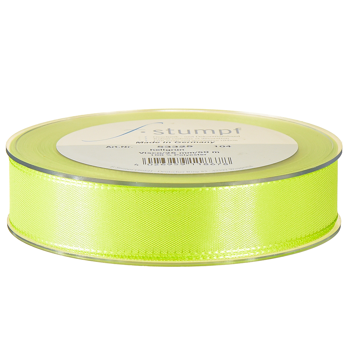 Het stoffen lint glanst in betoverend limoengroen. Dankzij het fijne, licht glanzende oppervlak ziet het cadeaulint er bijzonder goed uit op een zonnige plaats en in de buurt van lichtbronnen zoals kaarsen of kerstverlichting.