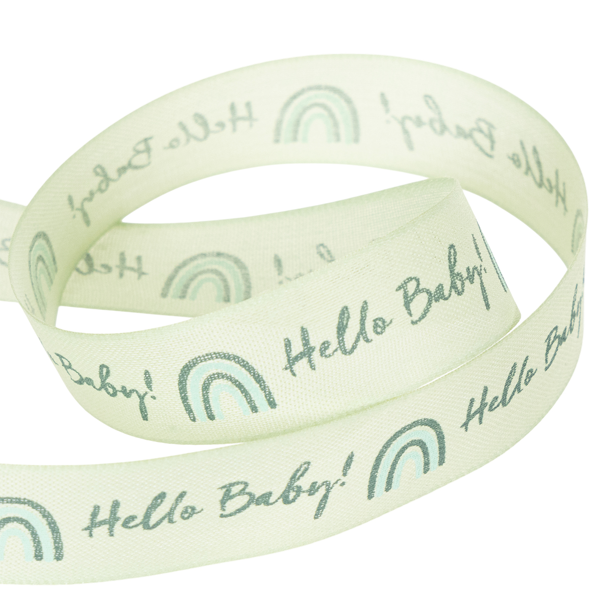 “Hello Baby!”, het cadeaulint verwelkomt je kleine nieuwkomer. Het pastelgroene sierlint kondigt het goede nieuws aan met mooie letters en is geschikt om te versieren, te geven en te knutselen!