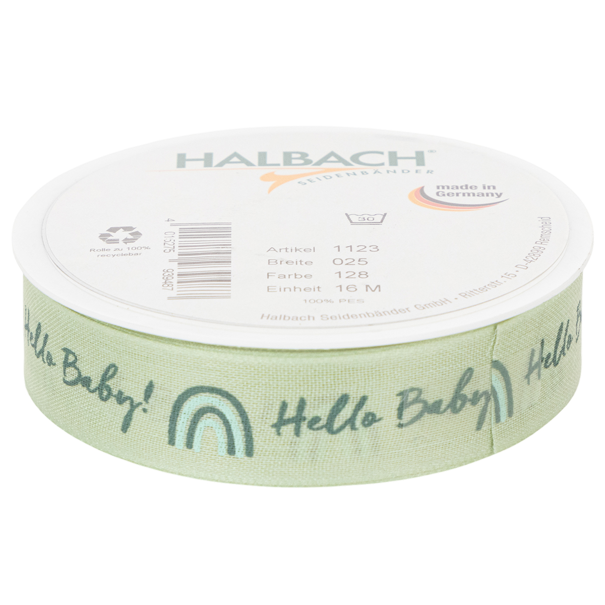 Cadeaulint Hello Baby decoratief lint groen 25 mm 16 m