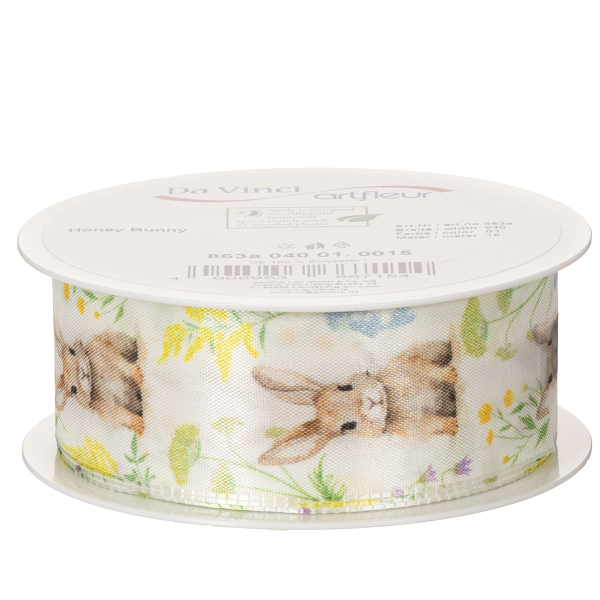 Productnaam: Cadeaulint met paashaasmotief voor feestelijke verpakkingen, 15 meter