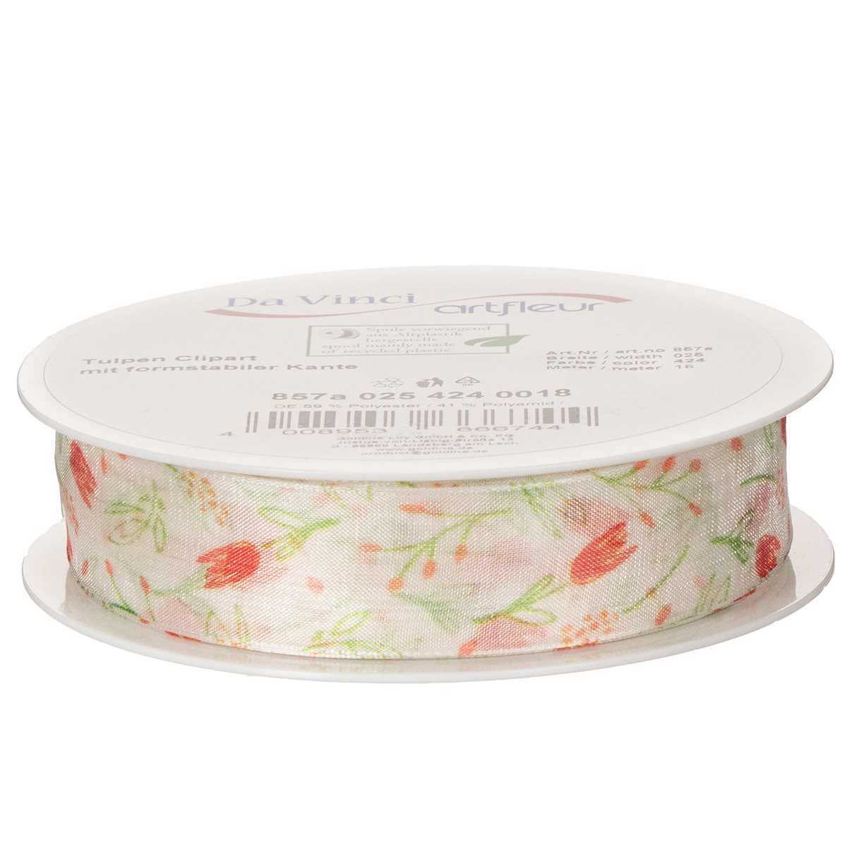Productnaam: Cadeaulint met tulpenpatroon, creatief voor speciale gelegenheden en seizoensdecoratie, 2,5 cm breed, 18 m lang