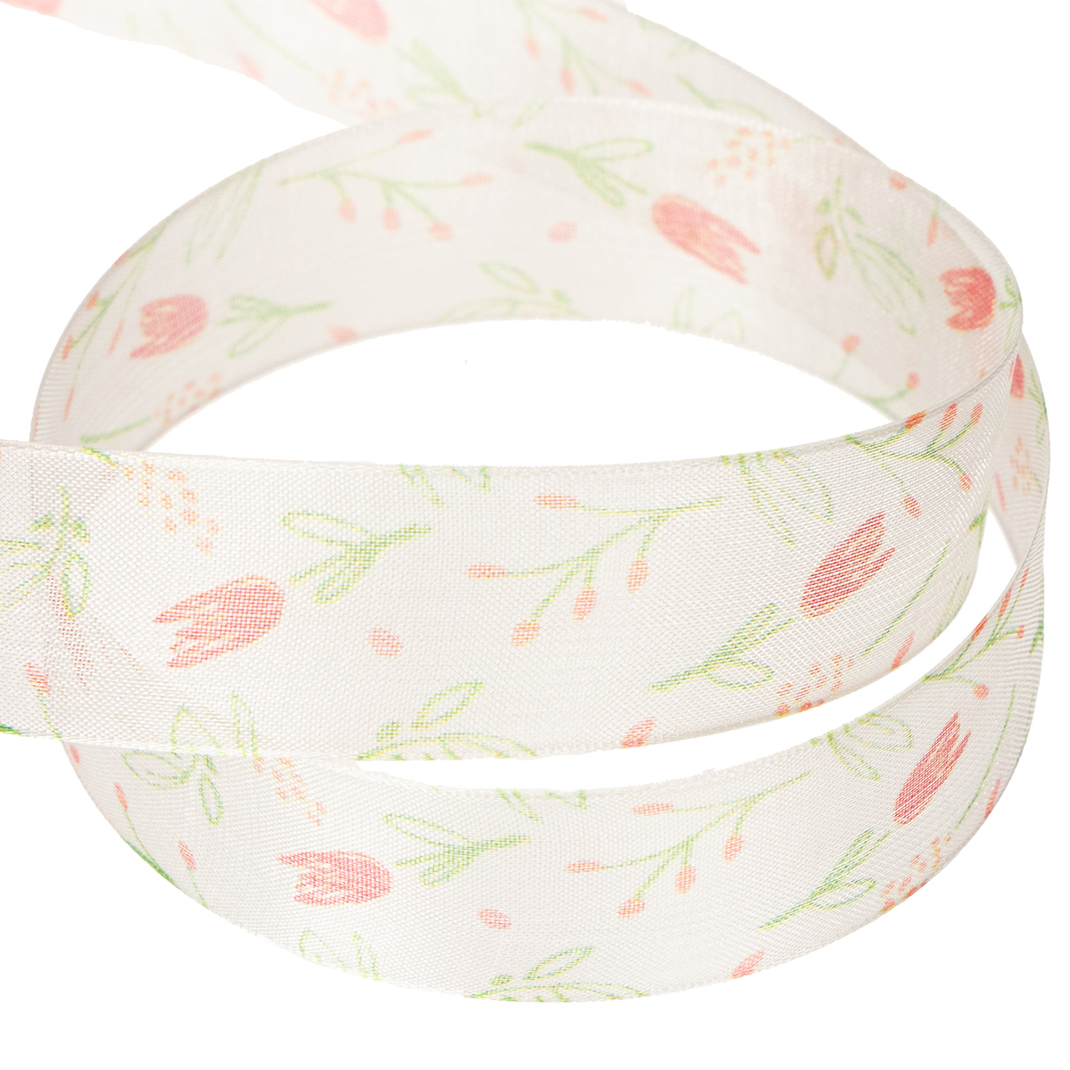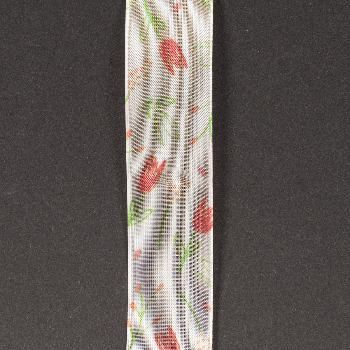 Cadeaulint met tulpenpatroon, creatief voor speciale gelegenheden en seizoensdecoratie, 2,5 cm breed, 18 m lang