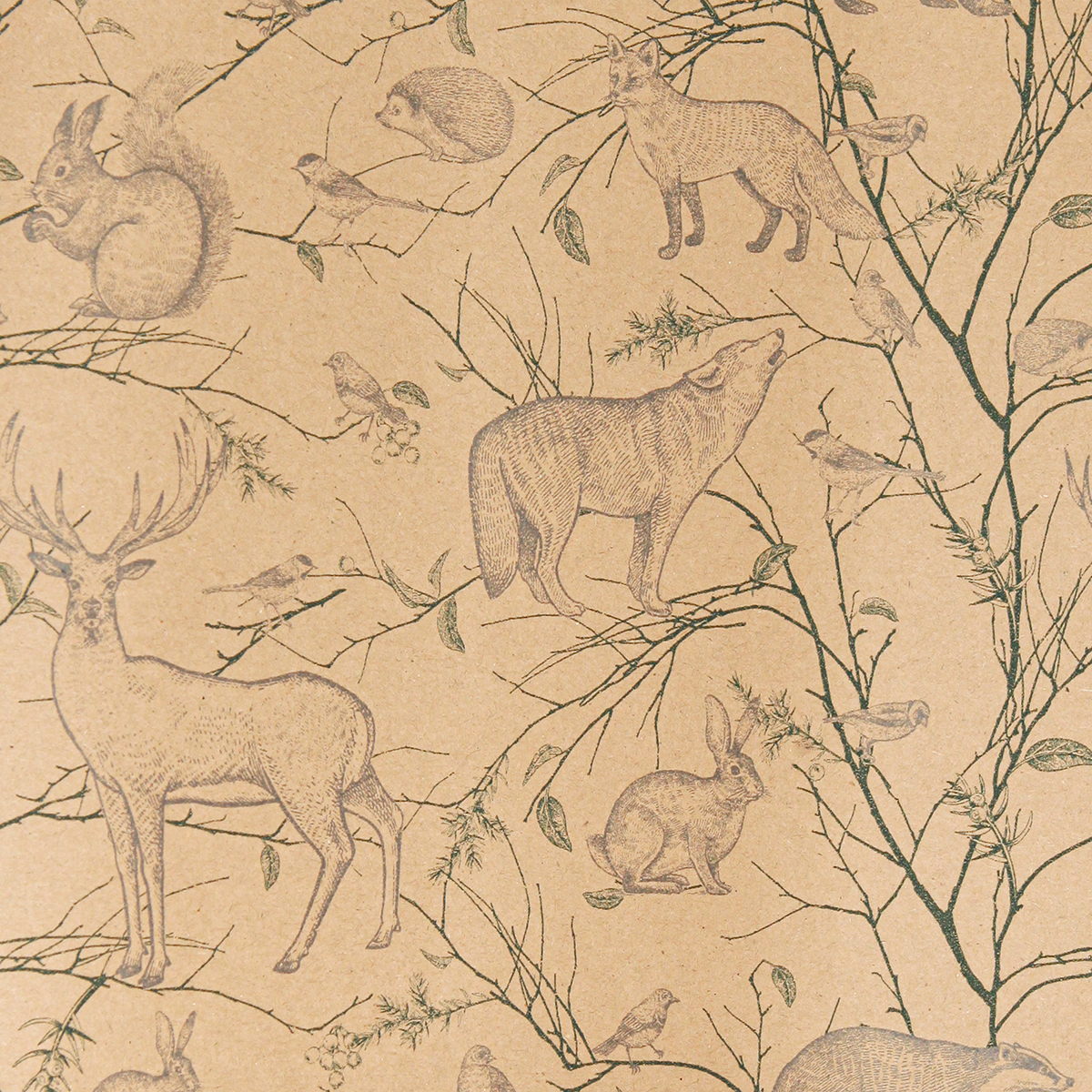 Bruin inpakpapier met bosdieren in blauw: natuurlijke elegantie voor uw cadeaus