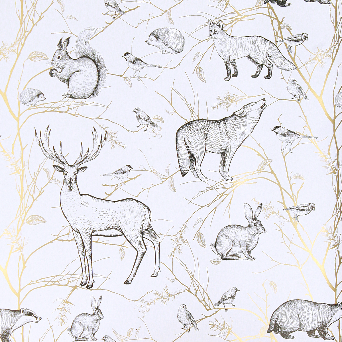 Cadeaupapier dieren wit grijs goud herfst winter 200cm