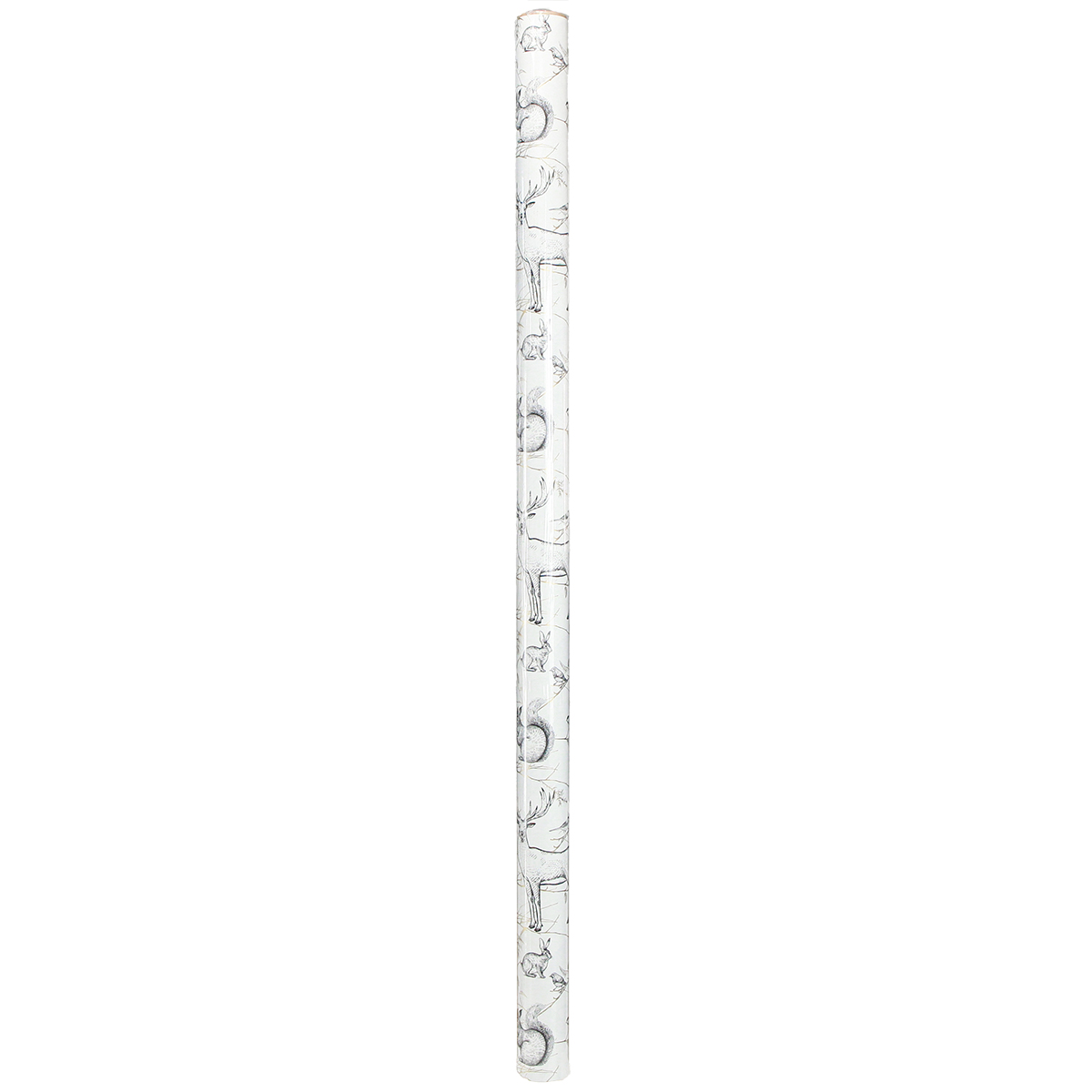 Productnaam: Cadeaupapier dieren wit grijs goud herfst winter 200cm