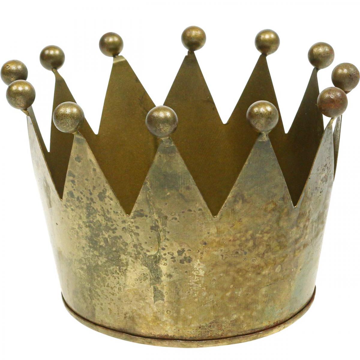 Deco kroon antiek messing look metalen tafeldecoratie Ø14cm H9cm