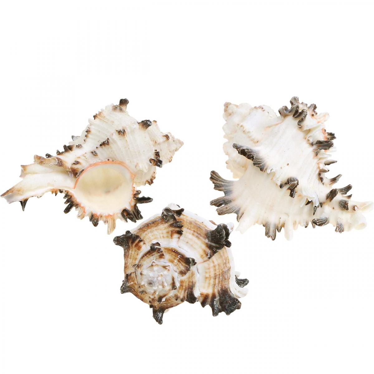 De prachtige decoratieve slakkenhuizen zorgen voor opschudding in de natuurlijke decoratie. De zeeslakken komen uit de diepten van de Indo-Pacifische Zee en behoren tot het geslacht Murex, de stekelslakken. De sneeuwwitte en gestreepte schelpen van de schelpdecoratie zijn buitengewoon schilderachtig. Elke natuurlijke slak is zorgvuldig geselecteerd, geleegd en schoongemaakt voor de exclusieve maritieme decoratie.