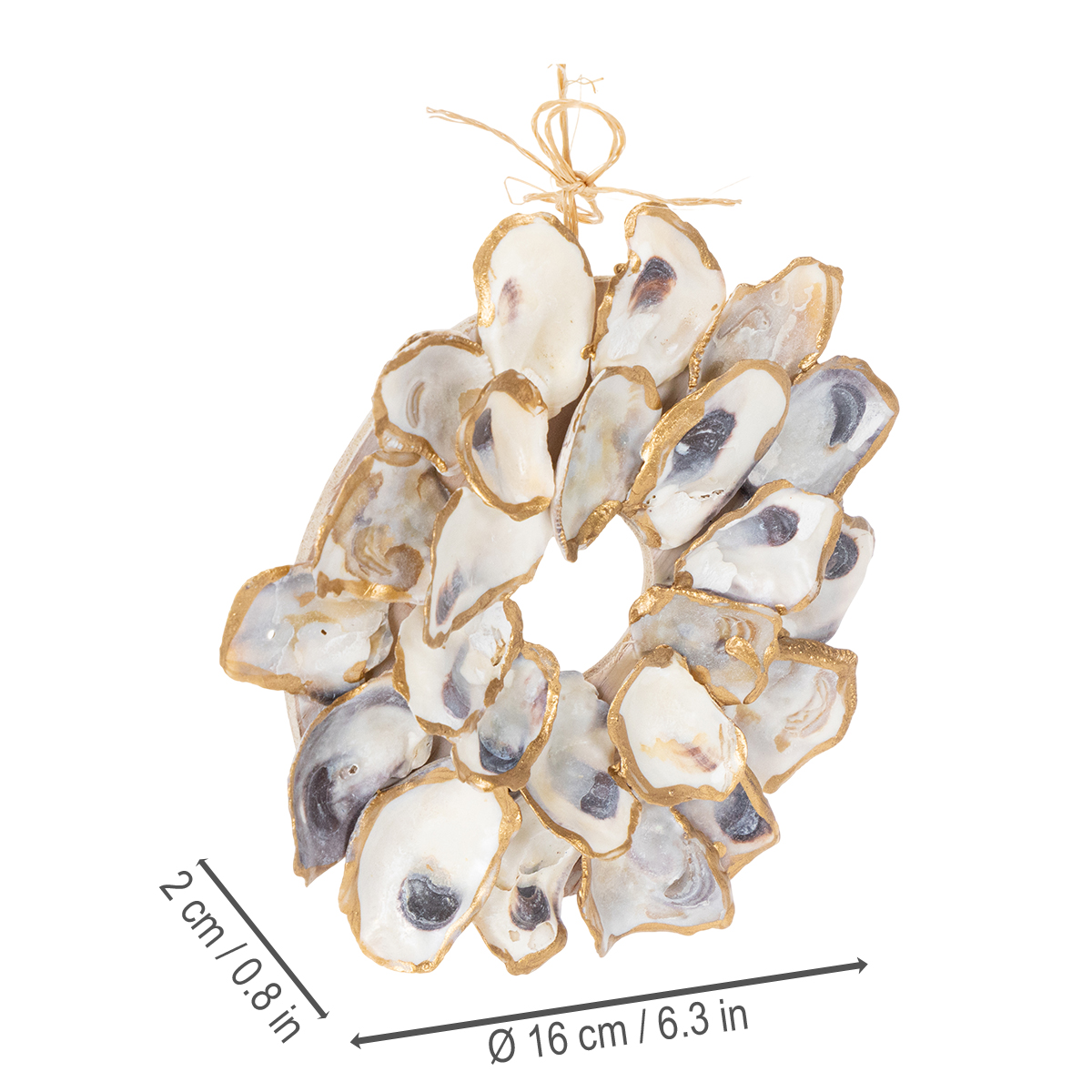 Productnaam: Decoratie met oesterschelpen, maritiem woonaccessoire, natuurlijke wanddecoratie, 12 cm