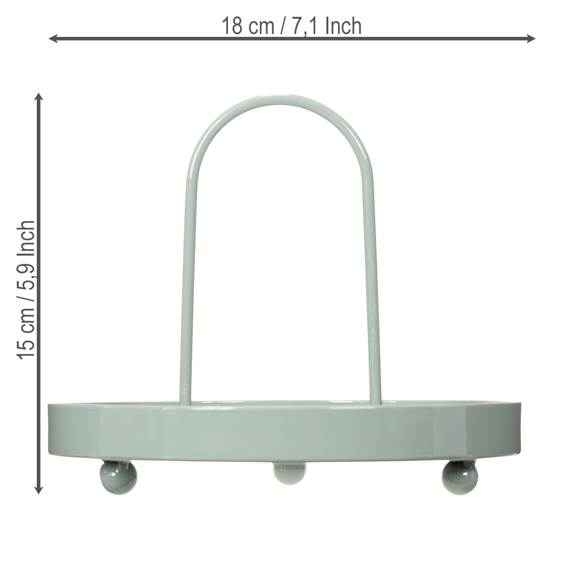 Dit dienblad combineert op unieke wijze elegantie en functionaliteit. Met een diameter van 18 cm en een hoogte van 15 cm biedt het de perfecte setting voor zowel alledaagse als speciale gelegenheden. De hoge metalen handgreep maakt het niet alleen gemakkelijk te dragen, maar geeft het ook een stijlvolle uitstraling. Het materiaal straalt stevigheid uit, terwijl het groene oppervlak een heerlijk frisse en natuurlijke sfeer aan uw interieur geeft. Op het aanrecht biedt het voldoende ruimte voor kruidenpotjes of flesjes met aromatische oliën. Wilt u een decoratieve collectie theelichtjes en vazen op uw salontafel presenteren? Met dit decoratieve element is dat eenvoudig. Het is zelfs perfect te gebruiken als fruitschaal: sorteer en presenteer uw fruit, en voilà – u heeft een moderne en praktische oplossing gevonden! Een ander pluspunt is de veelzijdigheid: het dienblad brengt niet alleen orde en stijl in de keuken, maar is ook een praktische metgezel voor buffetten of tuinfeesten. Tip: combineer het dienblad met andere decoratieve items in Scandinavische of rustieke stijl voor een harmonieuze woonruimte.