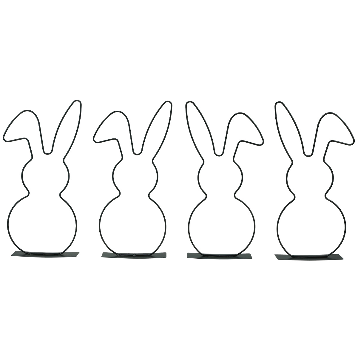 Decoratief konijntje zwart metalen standaard Pasen 30cm 4 st