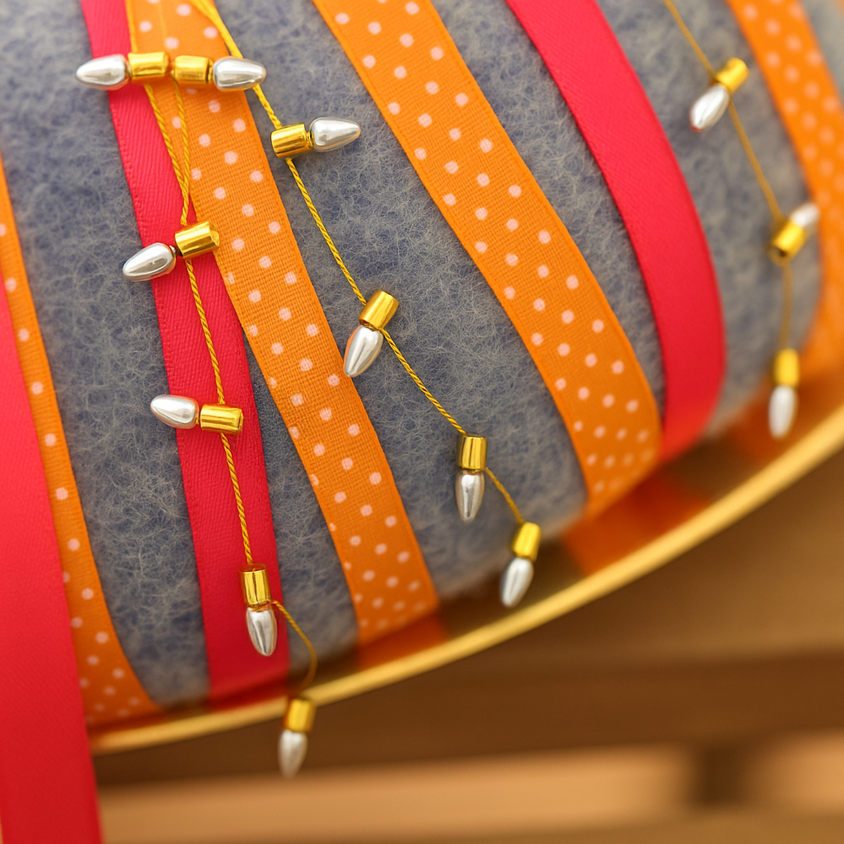 Betover uw kerstseizoen met ons prachtige kerstlint in goud en zilver. Dit decoratieve lint met zijn zilveren decoratieve lichtjes geeft een charmant tintje aan uw feest. Het decoratieve lint, dat doet denken aan een lichtsnoer, is perfect voor handwerkliefhebbers en decorateurs die hun creaties een elegante, feestelijke glans willen geven.