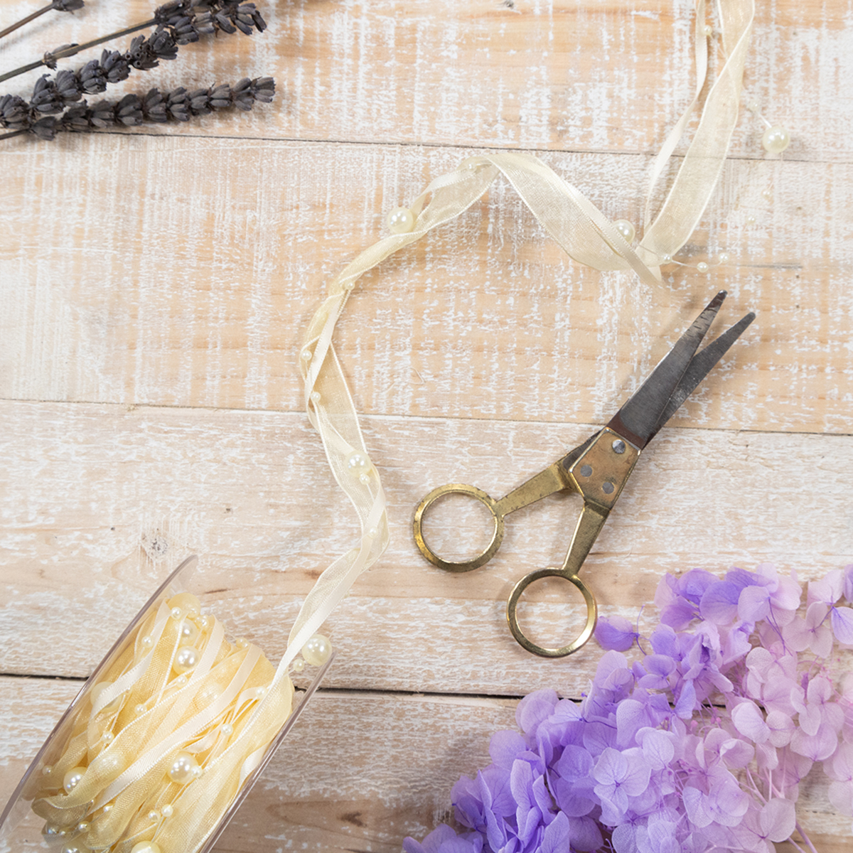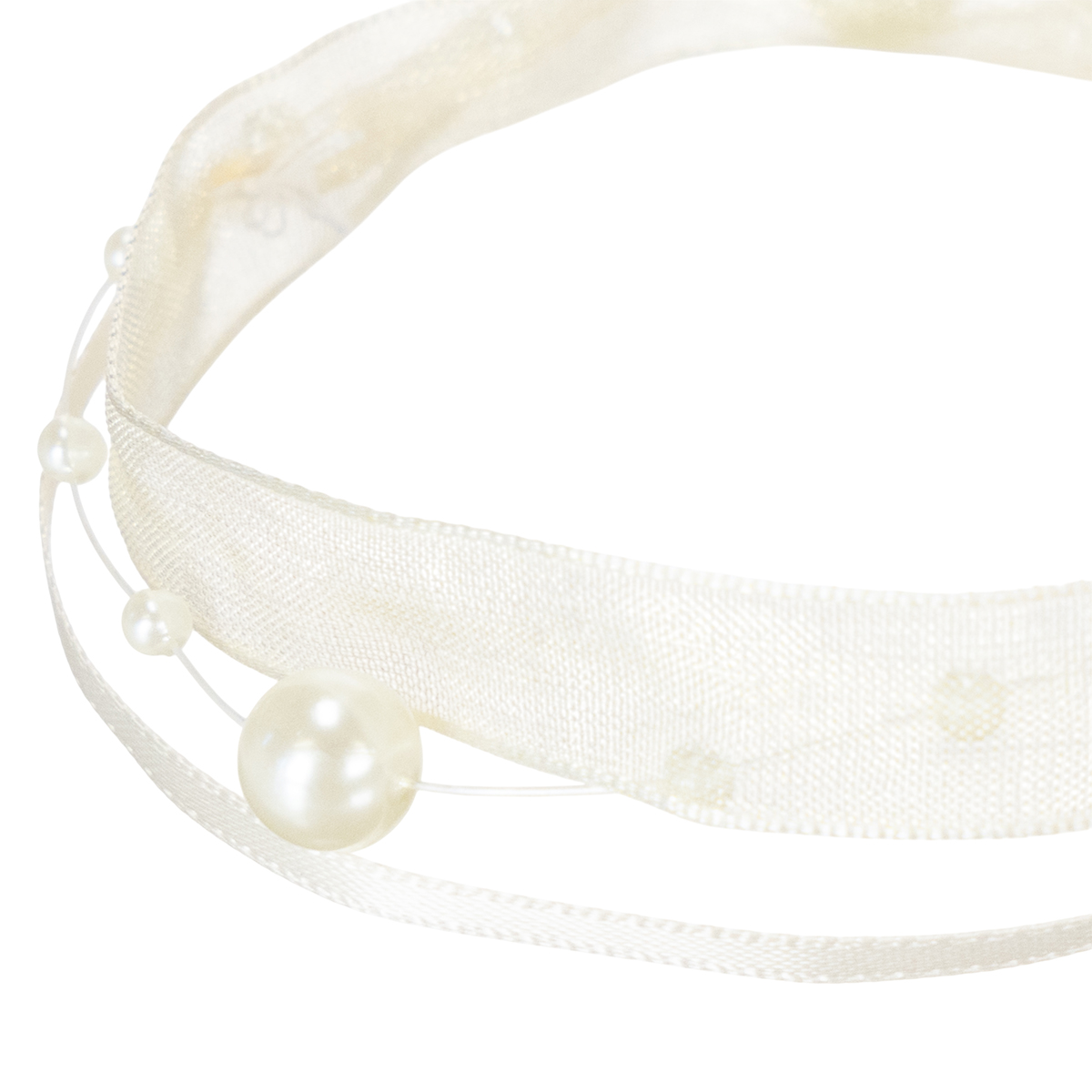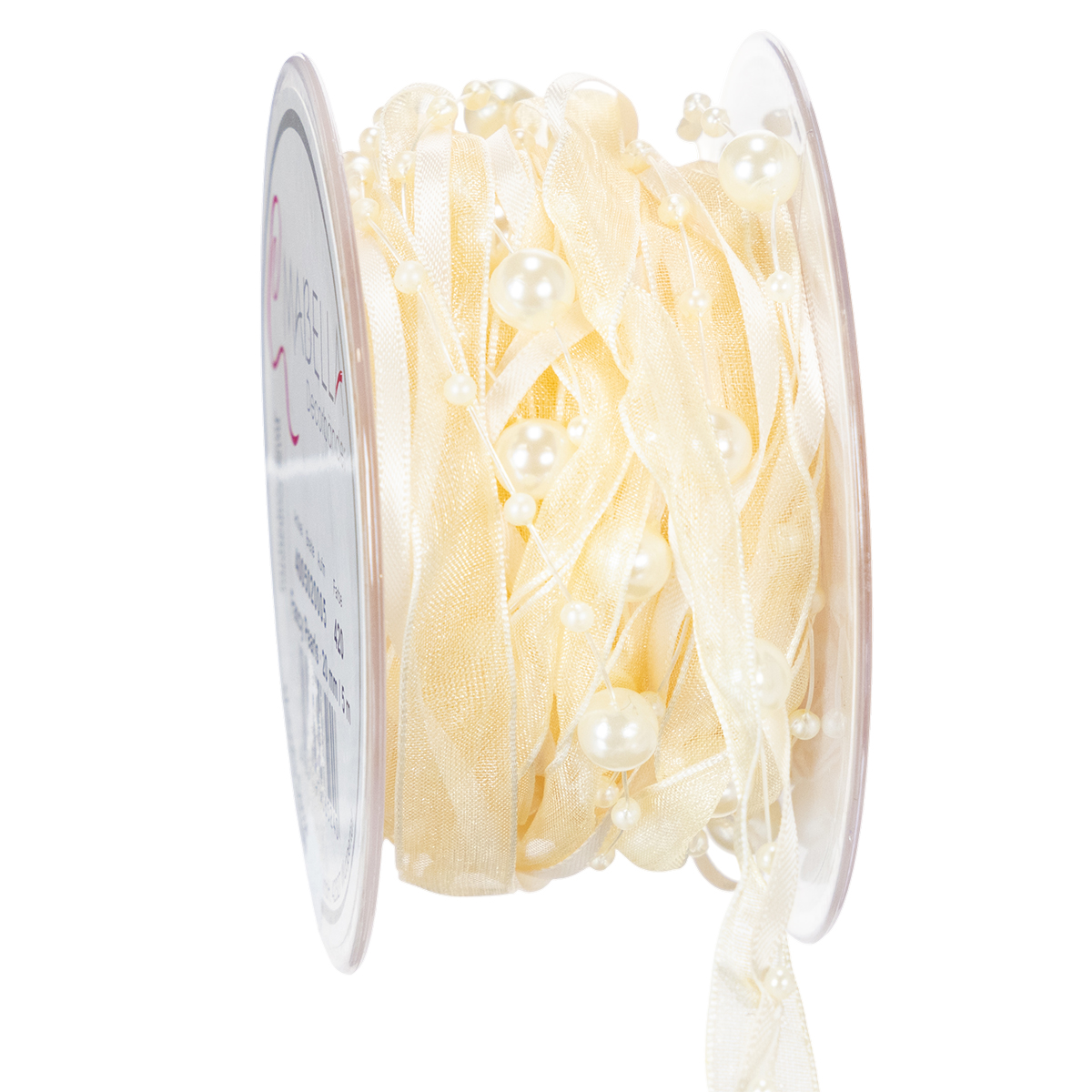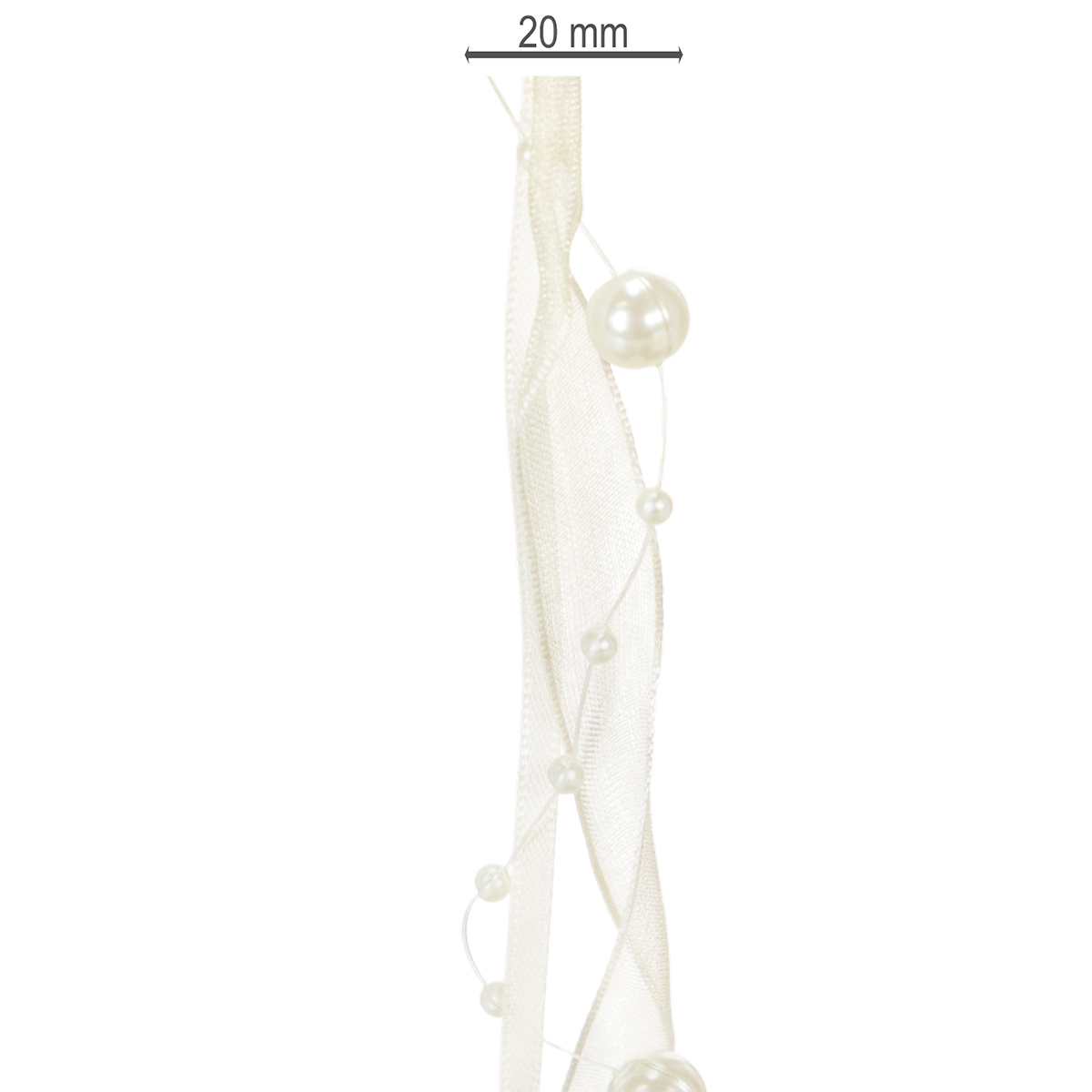 Productnaam: Decoratief lint met parels, crèmekleurig, 20 mm, 5 m