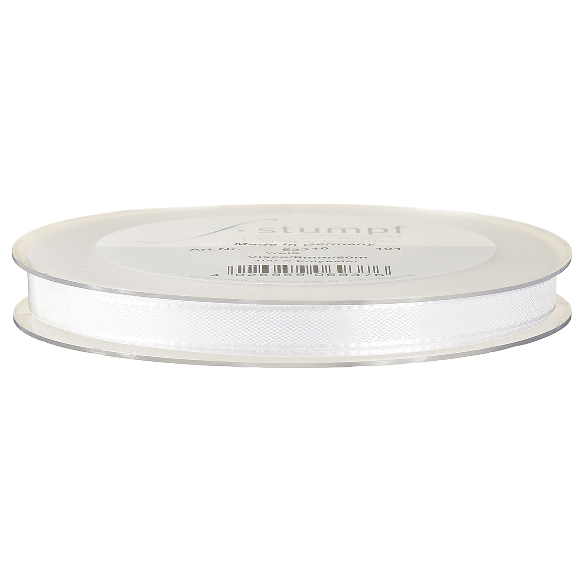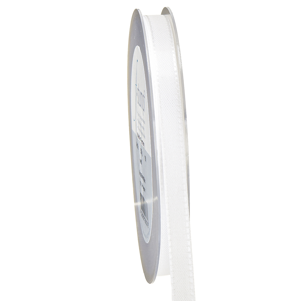 Het decoratieve lint in wit is gewikkeld op een rol plastic en heeft een totale lengte van 50 meter en een breedte van 8 millimeter.