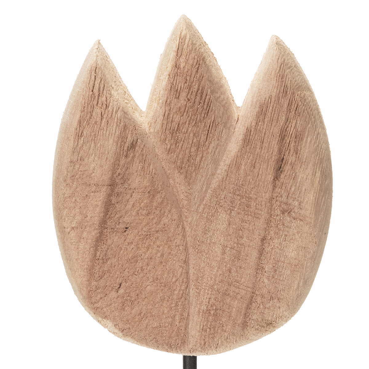 De tulp symboliseert van oudsher liefde, de lente en een nieuw begin – een symbool van frisse ideeën en een nieuwe start. Met zijn ingetogen elegantie straalt hij ook stijl en goede smaak uit, waardoor hij ideaal is voor wie op zoek is naar een subtiele maar opvallende decoratie. De neutrale houtafwerking benadrukt de harmonie en natuurlijke uitstraling nog eens extra.