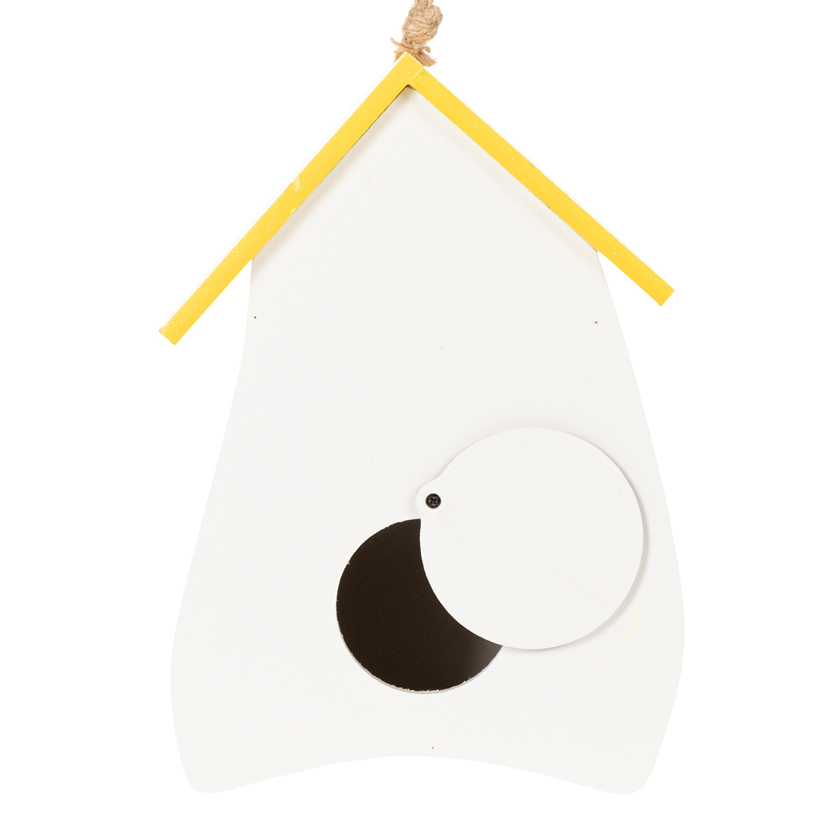 Wat geeft je interieur een frisse impuls en zorgt ervoor dat je huis net dat beetje extra krijgt? Precies, een decoratief object dat de aandacht trekt! Dit vogelhuisje in stralend wit met een geel dak en delicate bloemmotieven brengt direct vrolijkheid en een vleugje lente in huis. Perfect voor vensterbanken, woonkamers of balkons. Het is niet alleen charmant, maar ook wonderbaarlijk veelzijdig en voegt een liefdevol accent toe aan je leefruimte. Dankzij het stevige koord is het ophangen een fluitje van een cent en wie graag herdecoreert, zal de praktische opening aan de achterkant waarderen. Haal dit kleine juweeltje in huis en laat het de blikvanger van je interieur worden!