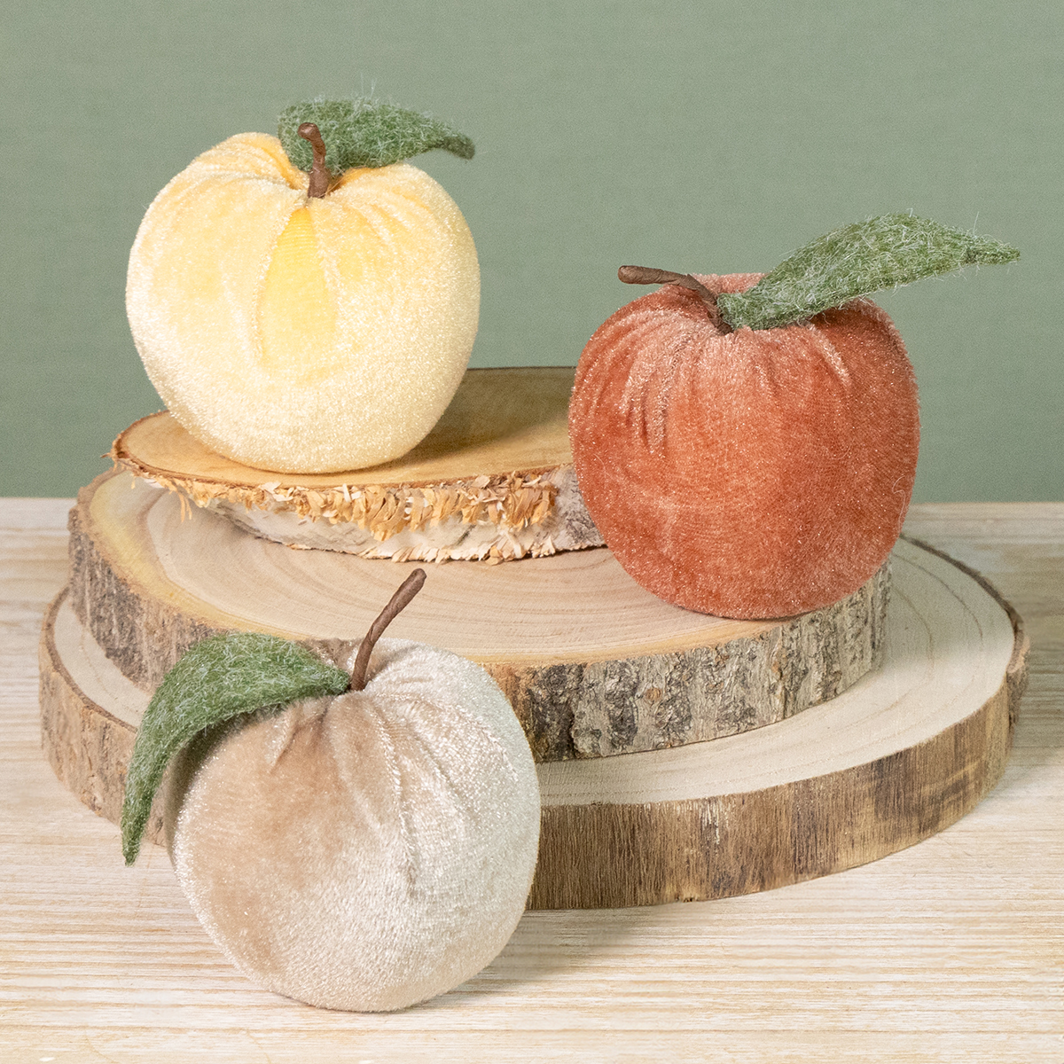 Productnaam: Decoratieve Appelfluweel met Blad Bruin Geel Ø7,5cm H9cm 9 st.