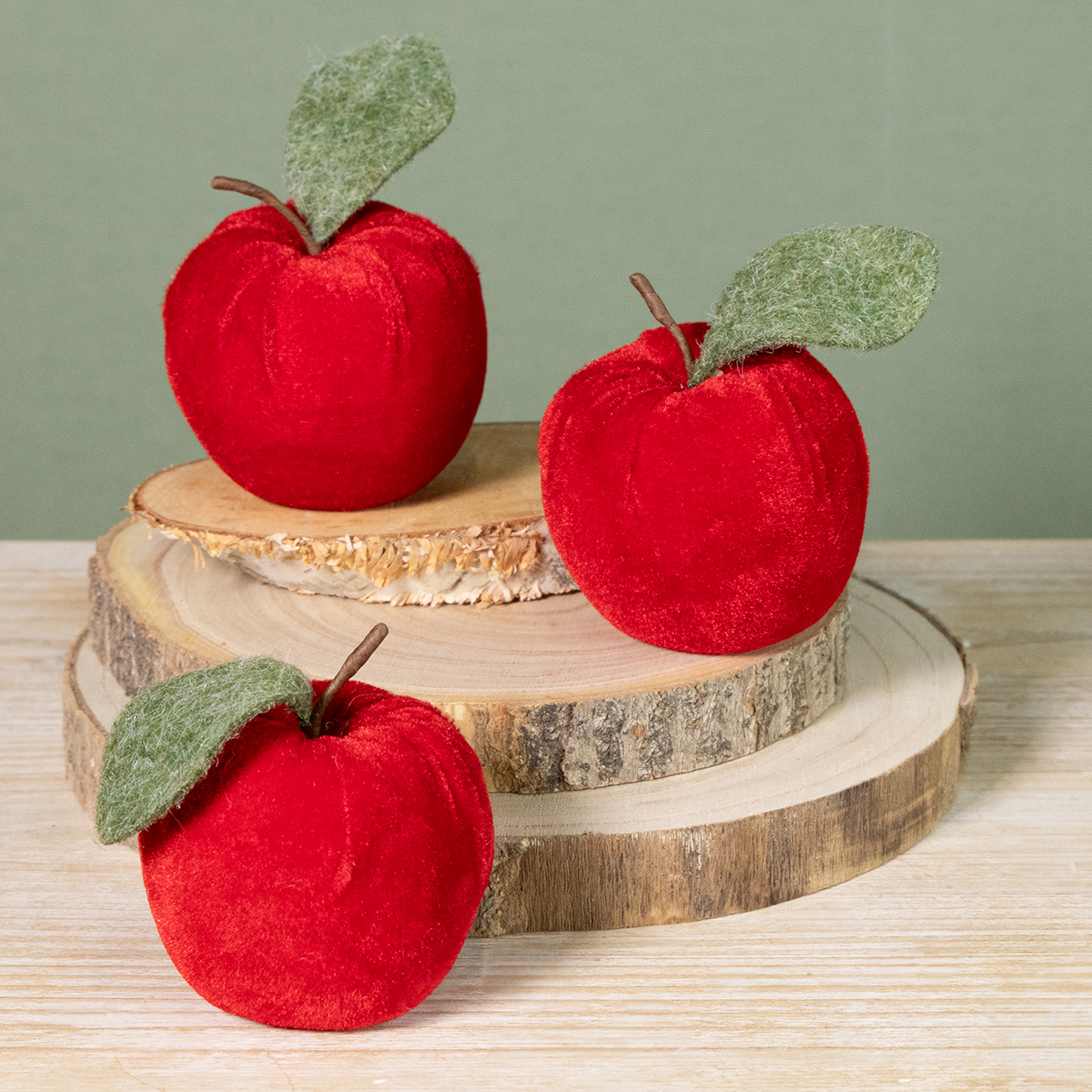 Productnaam: Decoratieve appelstof met bladfluweel & vilt rood Ø7,5cm H9cm 9 stuks