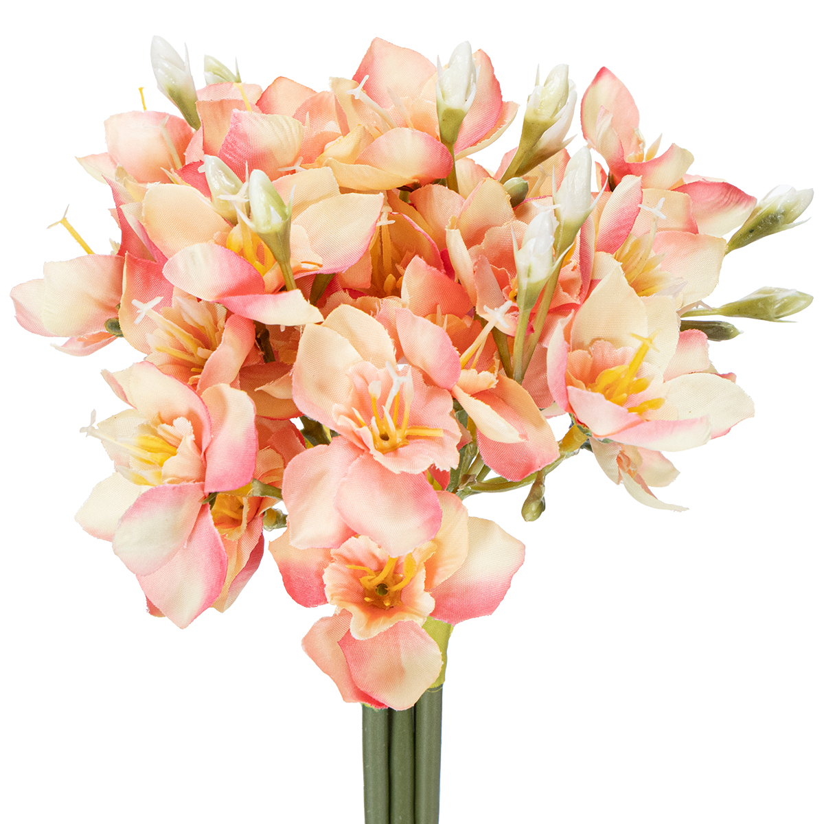 De alstroemeria, ook wel bekend als de Peruaanse lelie, symboliseert vriendschap, toewijding en kracht in de bloementaal. De warme roze tinten staan voor genegenheid, dankbaarheid en liefde – ideaal voor iedereen die via decoraties een oprechte boodschap wil overbrengen. Niet alleen in de bloemkunst, maar ook als kunstbloem geeft deze bloem betekenis aan uw leefruimte en speciale gelegenheden.