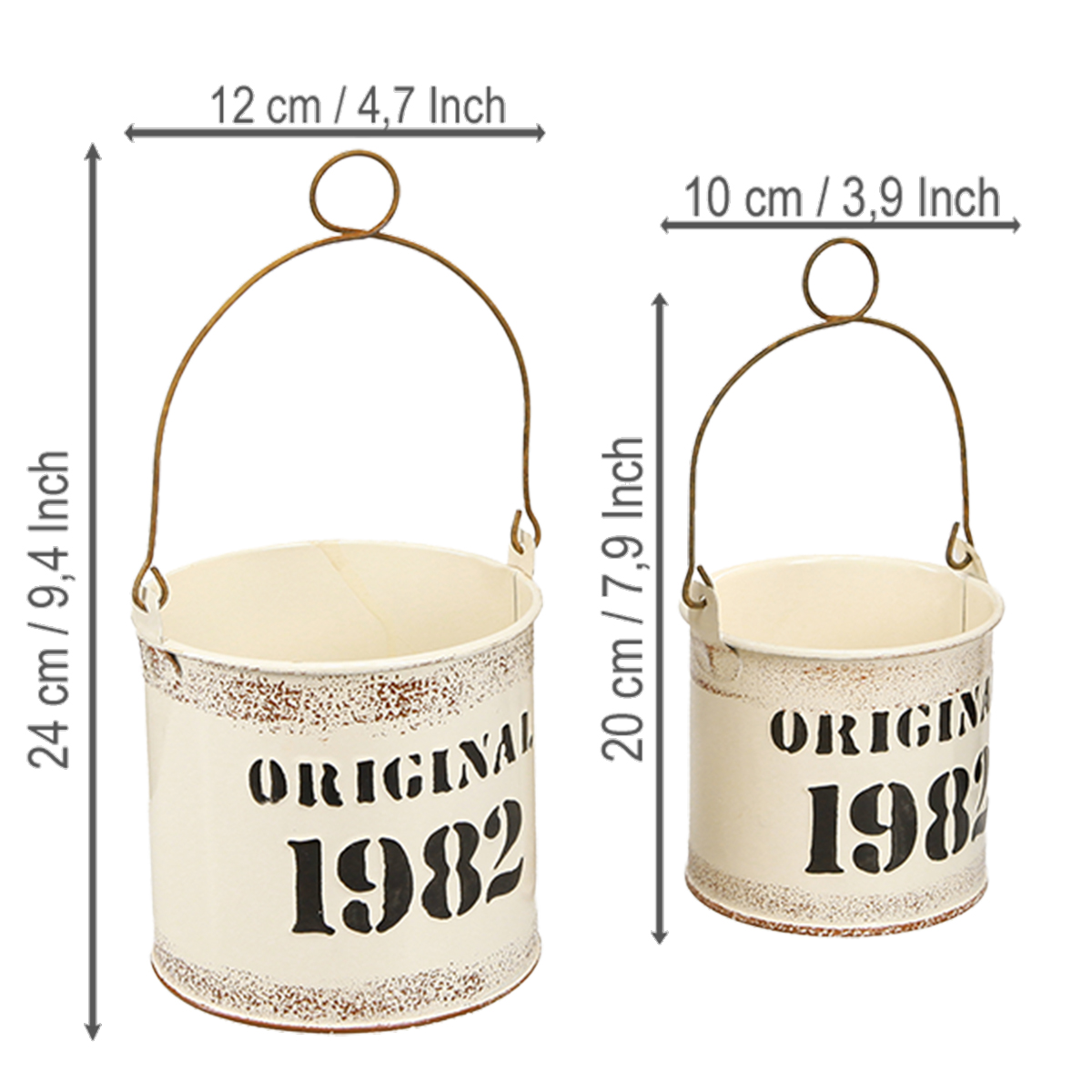 Decoratieve emmer met handvat “Original 1982” Crème Ø12/10cm 2x2-delige set