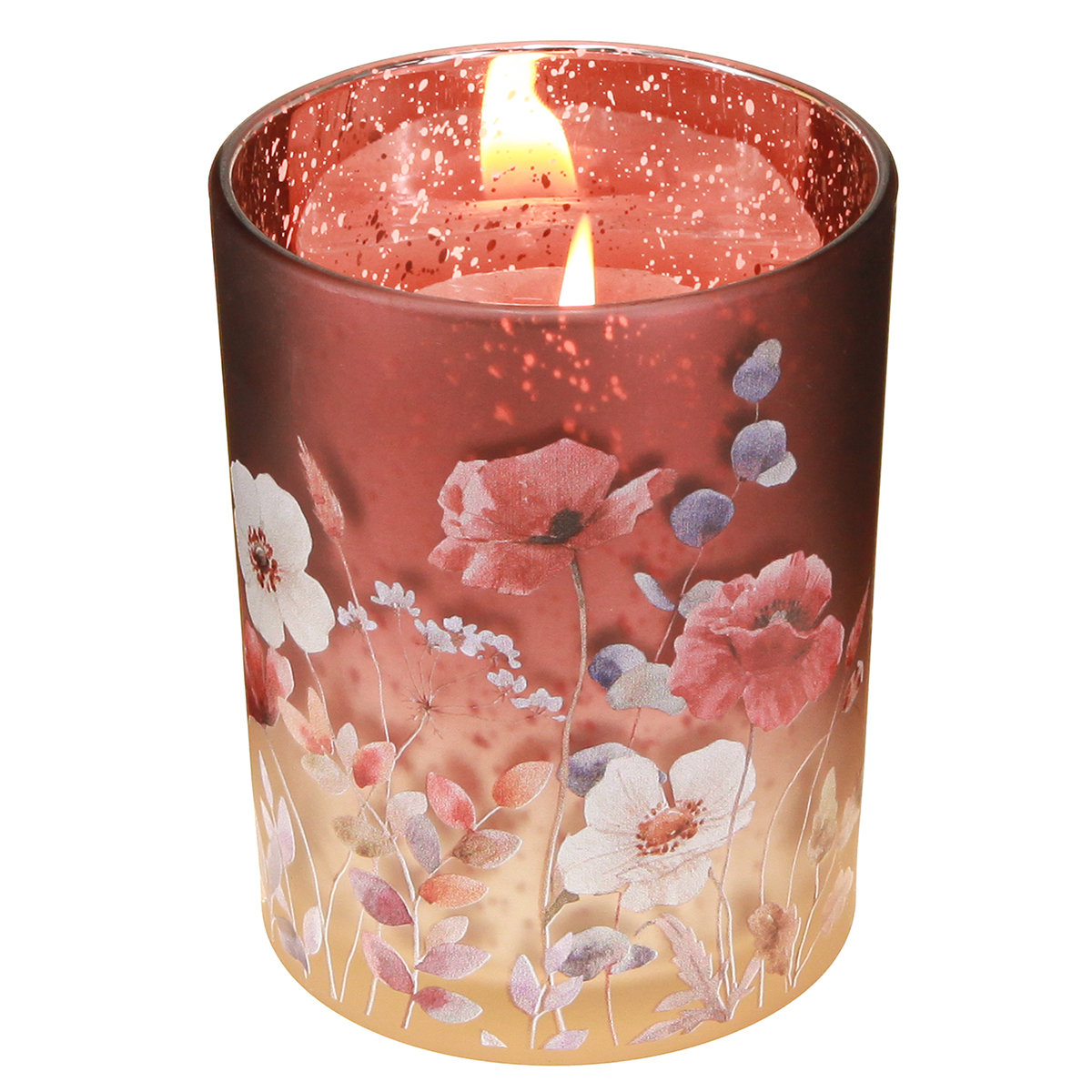 Een werkelijk betoverende kaarsenhouder. Of het nu op het balkon is tijdens een gezellige zomeravond, in de woonkamer voor een warme en uitnodigende sfeer, of als stijlvol middelpunt op uw prachtig gedekte tafel – deze decoratieve glazen kaarsenhouder zal zeker in de smaak vallen. Het charmante bloemenpatroon in delicate rode tinten en levendige accenten geeft uw interieur een nieuwe dimensie en voegt een vleugje romantiek toe. Het zachte kaarslicht dat door het bloemenpatroon filtert, creëert een warm en uitnodigend lichtspel. Perfect voor wie op zoek is naar iets bijzonders en stijlvolle accenten waardeert. En wie houdt er nu niet van om op zwoele avonden zijn huis te vullen met een vleugje natuur en elegantie?