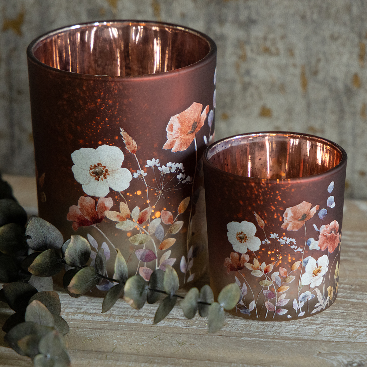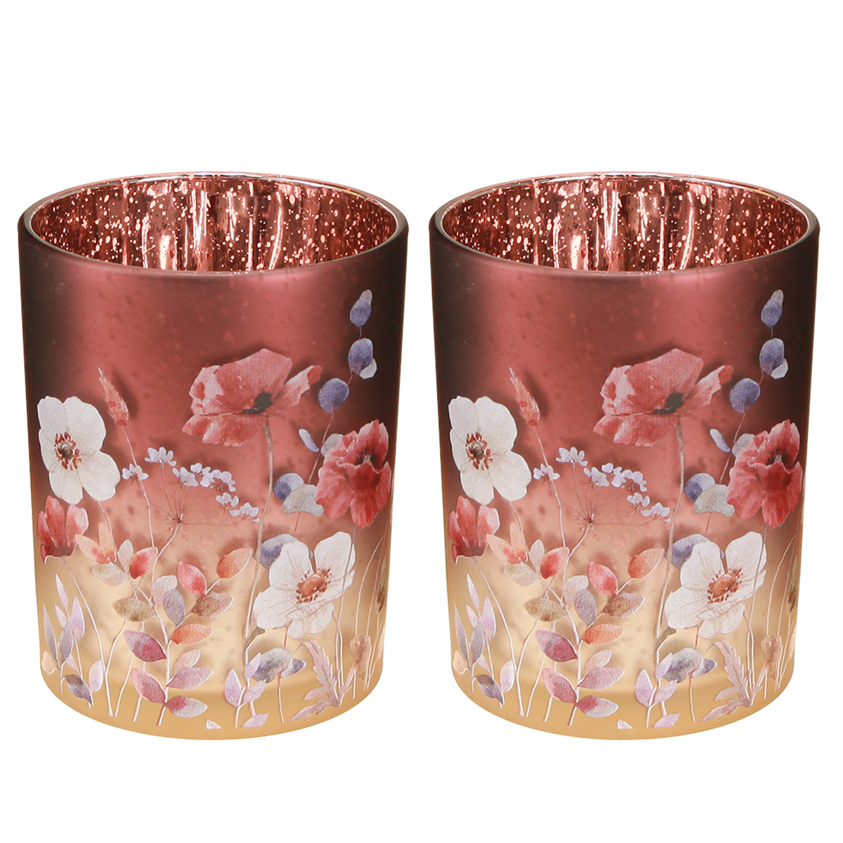 Decoratieve glazen lantaarn met bloemenmotief voor een elegante woondecoratie, 12,5 cm, 2 stuks