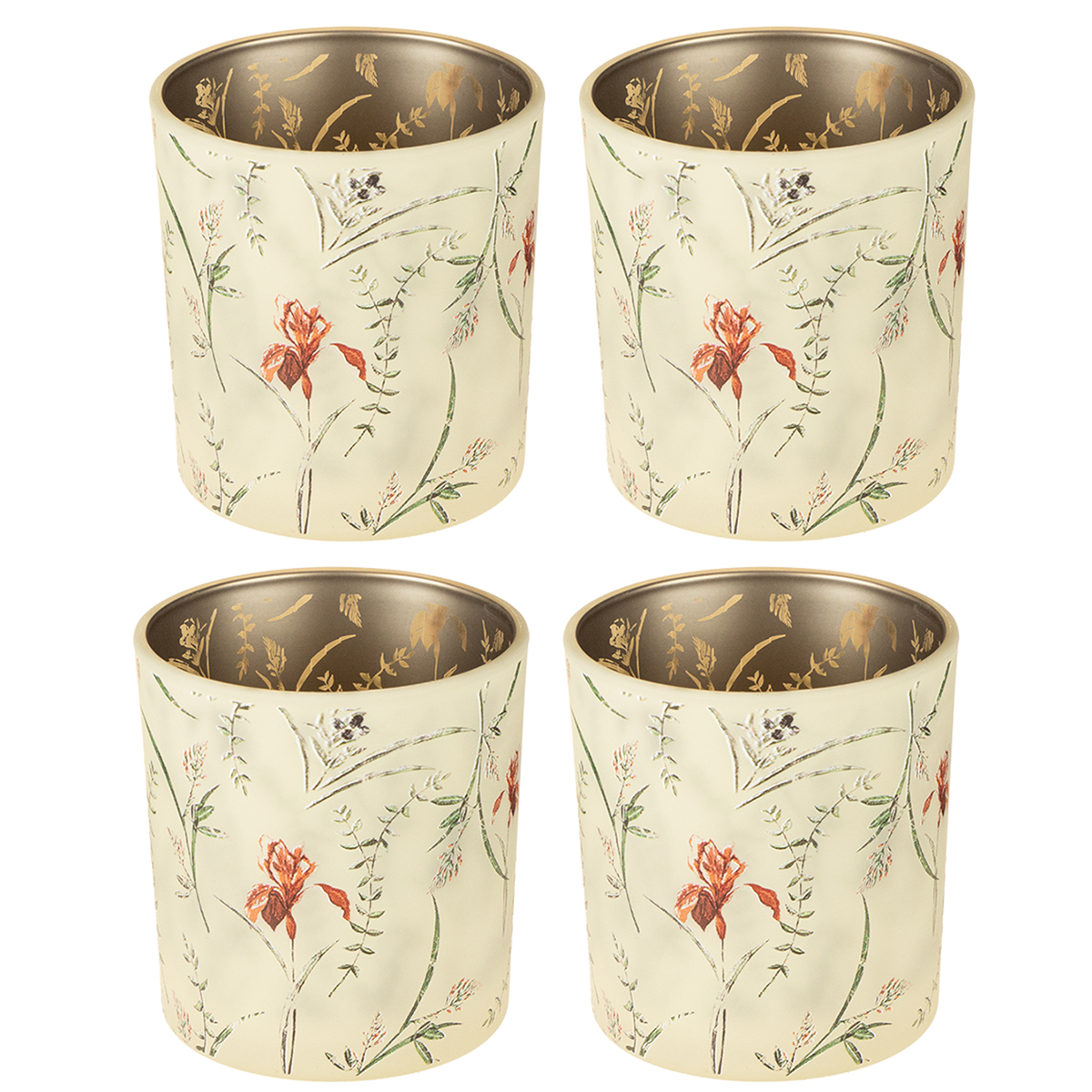 Decoratieve glazen lantaarn met bloemenmotief voor een sfeervolle inrichting, 8 cm, 4 stuks.