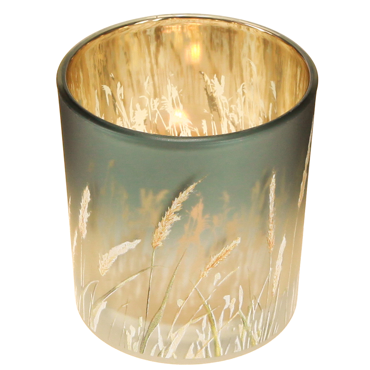 Productnaam: Decoratieve glazen lantaarn met grasmotief voor een sfeervolle kamerdecoratie, blauw, 8 cm, 4 stuks.