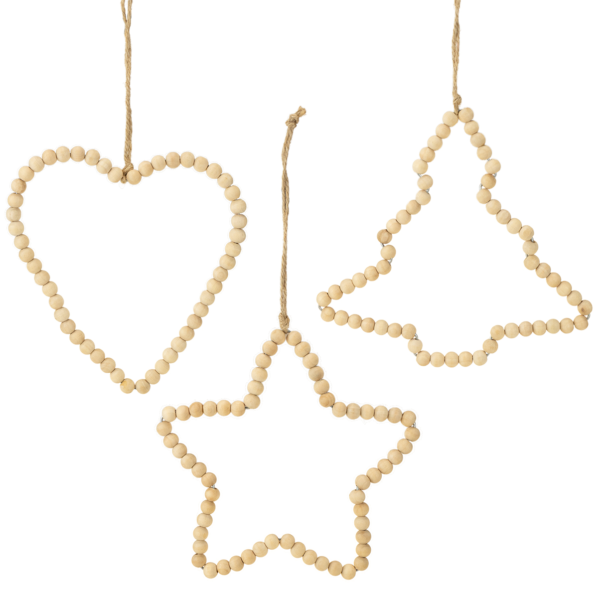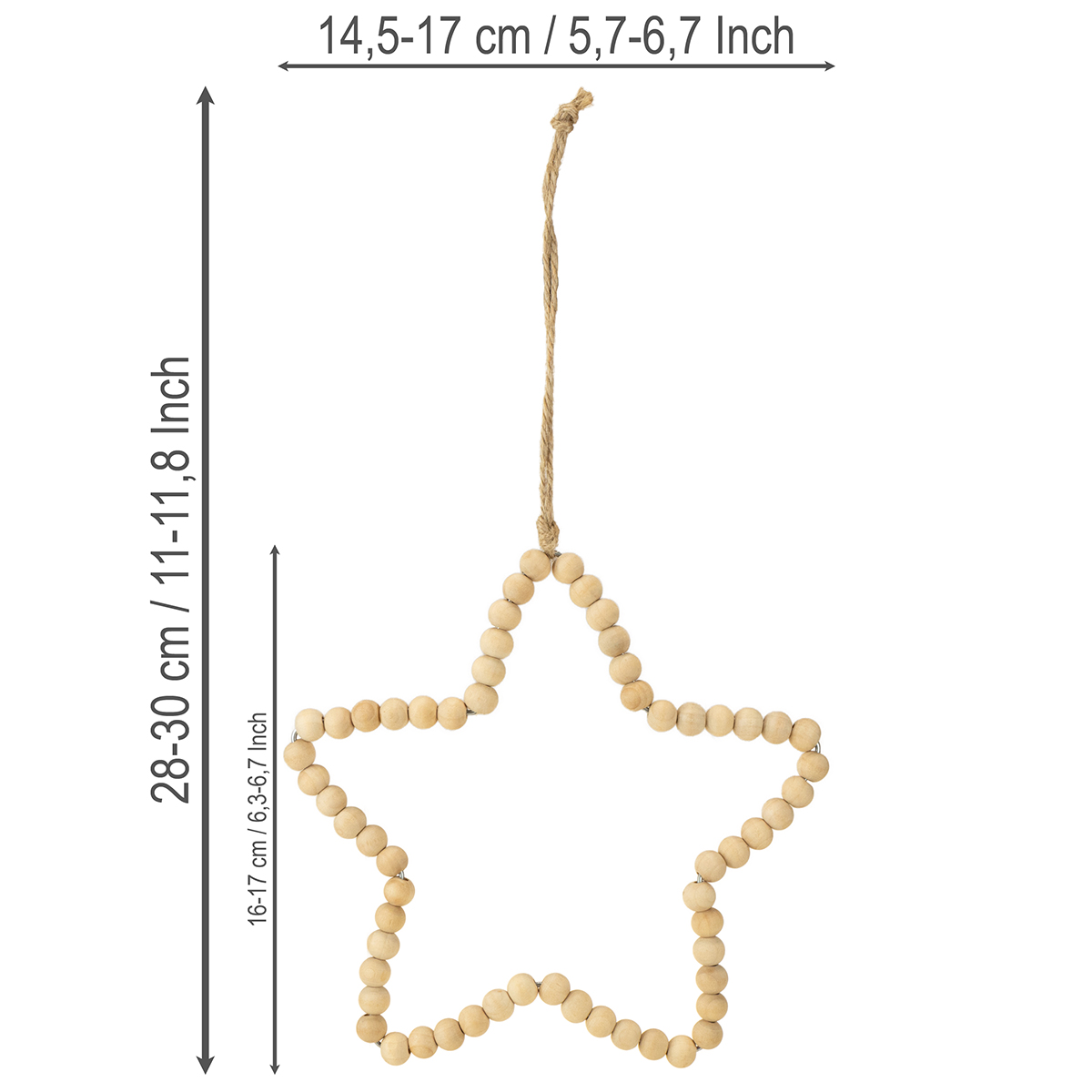 De parels zijn ongeveer een centimeter in doorsnee. De hanger bestaat uit een koord, ook naturel gehouden. De decoratie is uitstekend geschikt als kerstboomversiering, maar ook als hangende decoratie of raamdecoratie. Want de kersthanger ziet er van alle kanten even goed uit dankzij de ronde houten kralen.