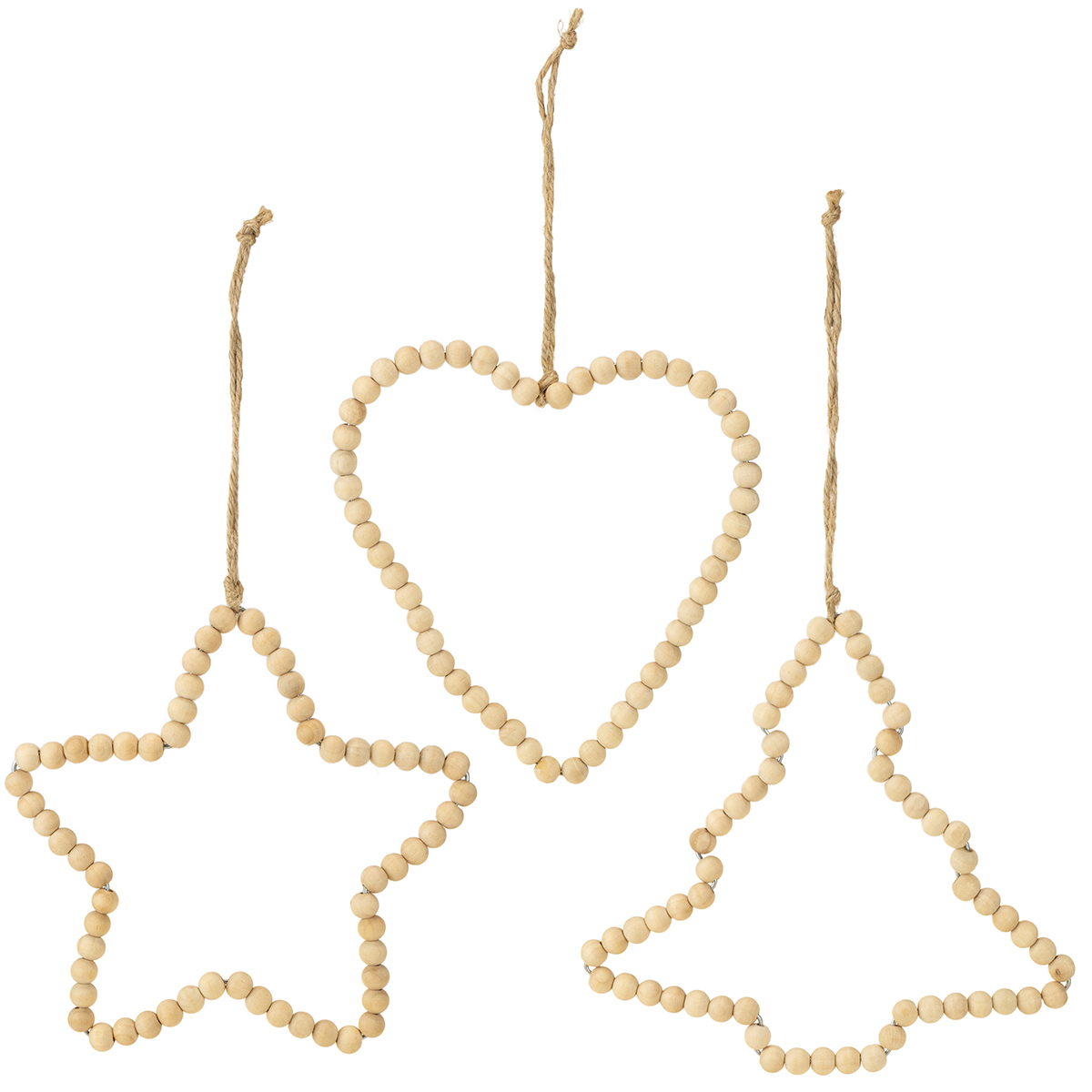 Productnaam: Decoratieve kerst houten kralen hart sterboom H16cm 3 st