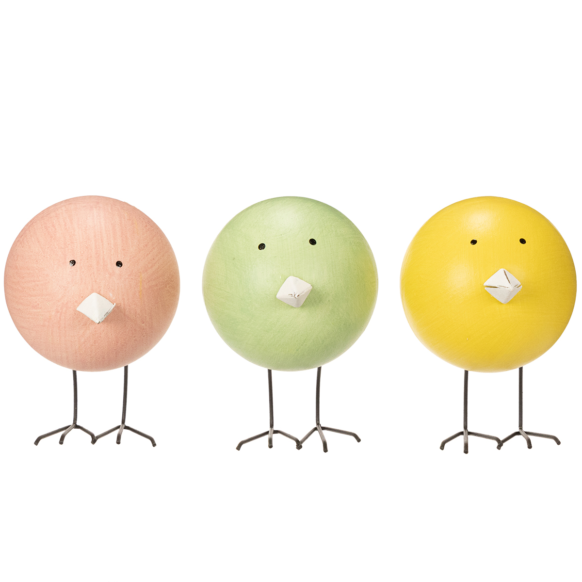 Zoekt u een slimme manier om een speelse en vrolijke touch aan uw huis toe te voegen? Onze ronde decoratieve kuikentjes fleuren elke kamer direct op. Of het nu gaat om charmante lentedecoratie op de eettafel, een kleurrijke toevoeging aan een feestelijke tafelsetting of een schattige blikvanger in een kinderkamer – deze drie kleine figuurtjes in geel, roze en groen toveren gegarandeerd een glimlach op ieders gezicht. De combinatie van hout voor de lijfjes en metaal voor de snavels en pootjes geeft de kuikentjes een stevige basis en een moderne uitstraling.