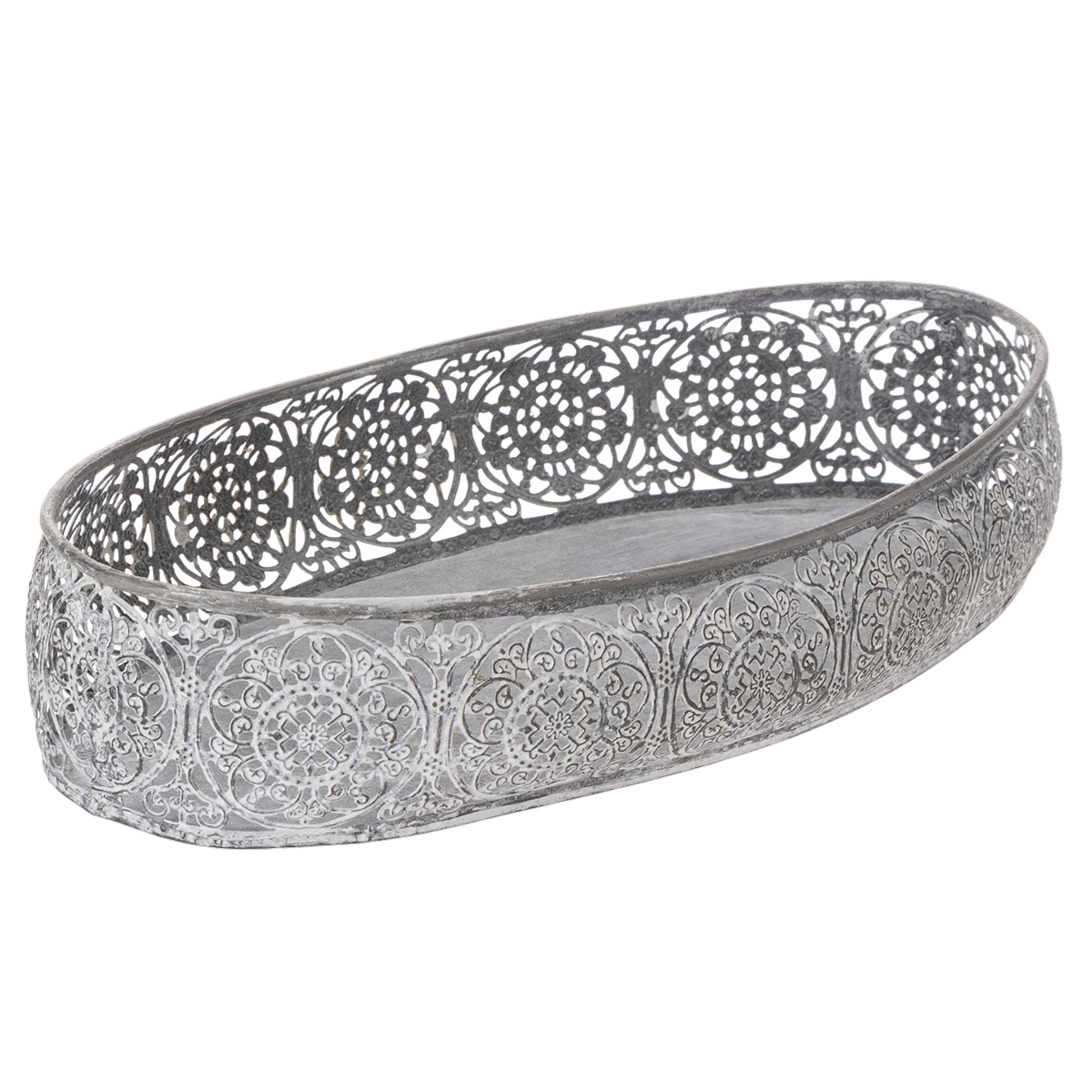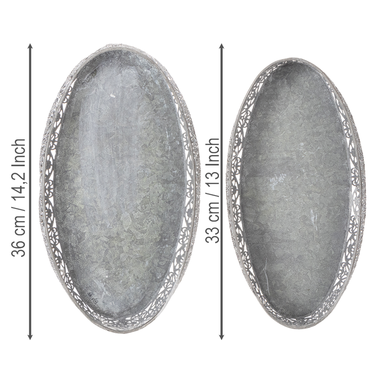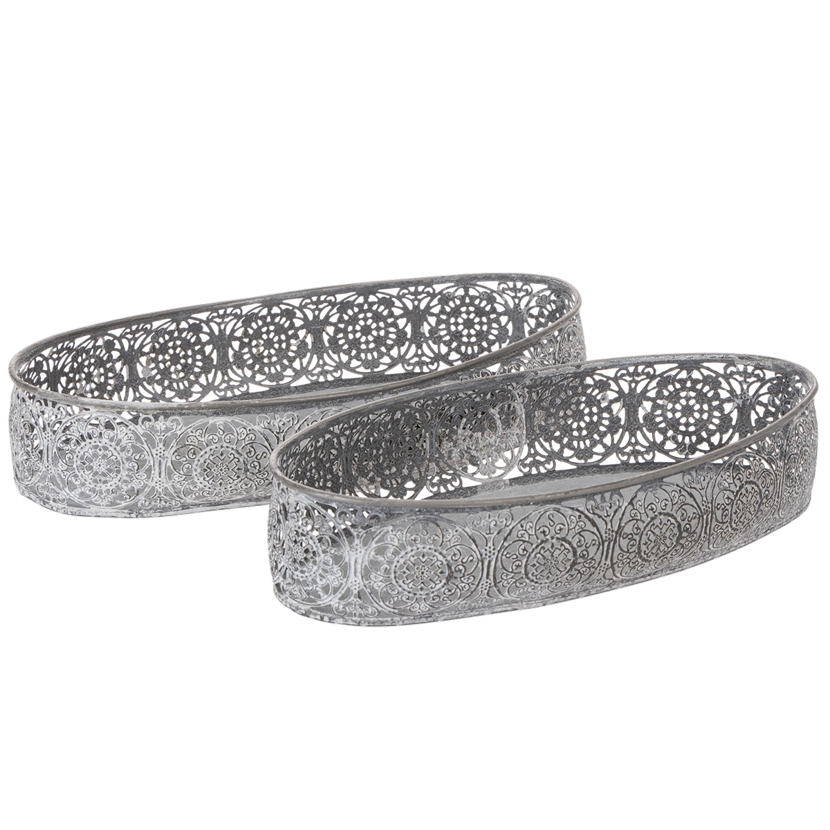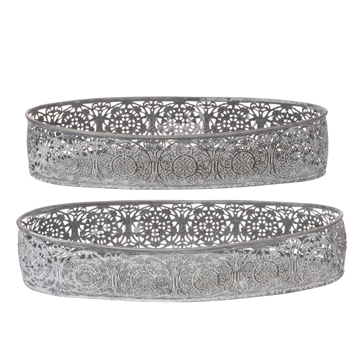 Decoratieve metalen kom, grijs patroon, ovaal, L36cm/33,5cm, set van 2